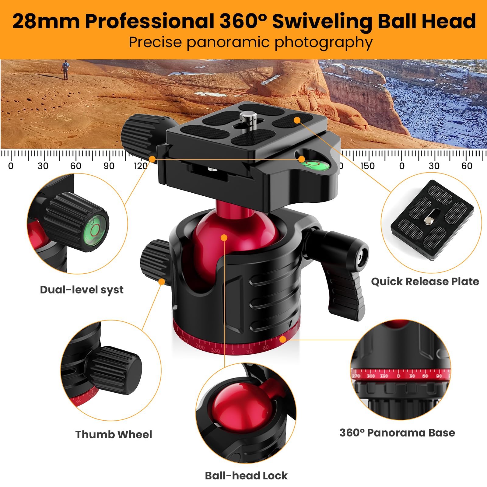 • 【360° Swivel Ball Head and Stability】The specially designed ball head swivels 360° to meet all your photographic needs. The precise 360° scale allows for precise image alignment and free angles, giving you perfect shots and stunning results. Stabilizing hooks for hanging extra weight and non-slip rubber feet designed for added stability.