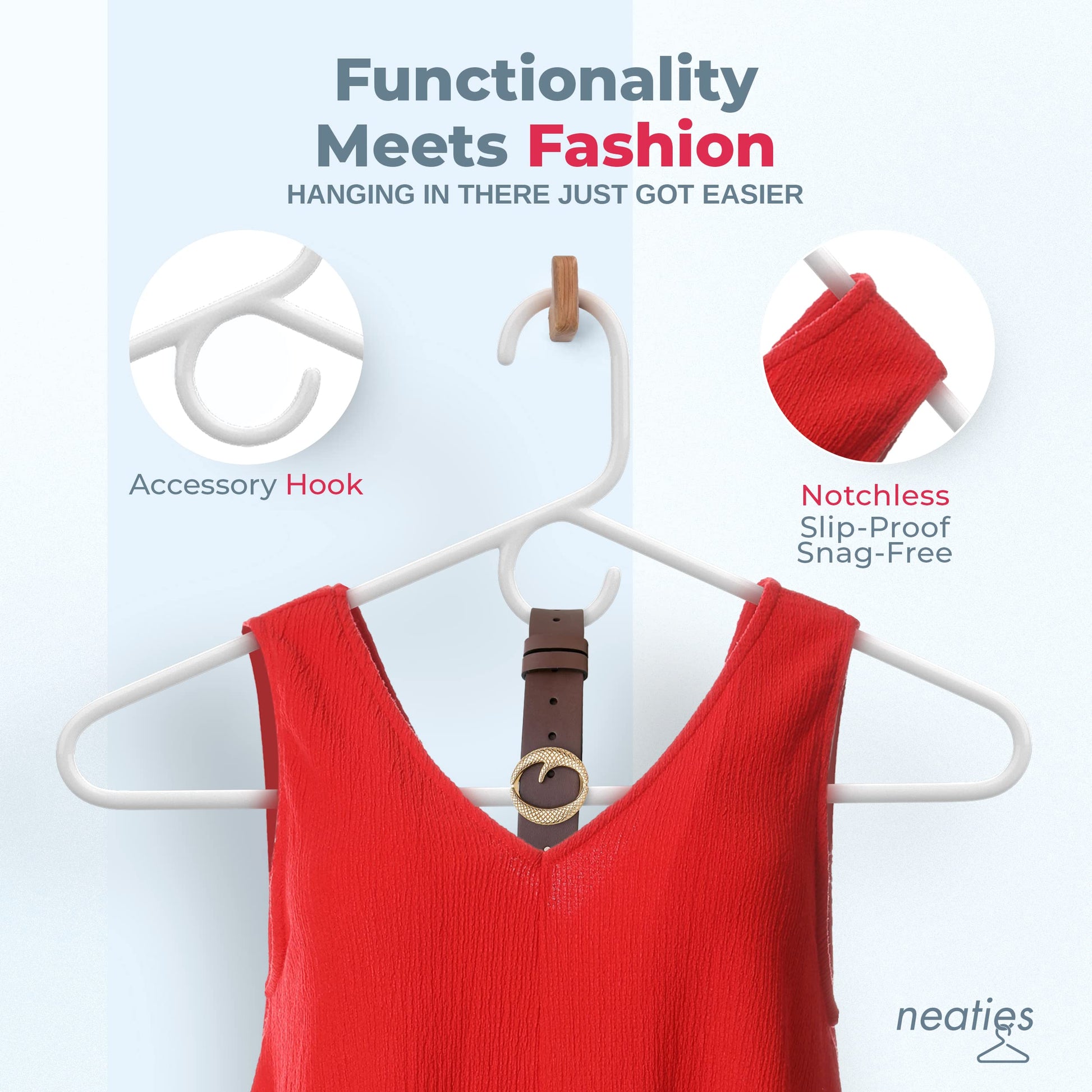 • HIGH-QUALITY SLIM DESIGN - These plastic coat hangers are made using high-quality and strong materials. The hangers plastic design also includes a convenient accessory hook, making them useful for ties, scarves, belts, and other accessories.