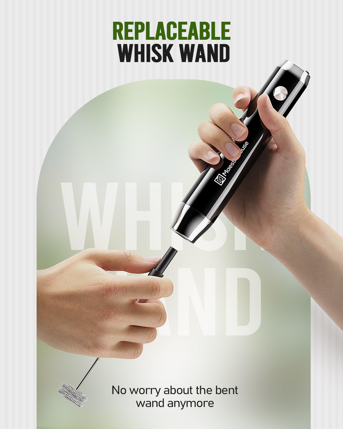 Maestri House Rechargeable Milk Frother with Stand, LunaFro Handheld Electric Foam Maker Waterproof Detachable Stainless Steel Whisk Drink Mixer Foamer for Lattes, Cappuccino