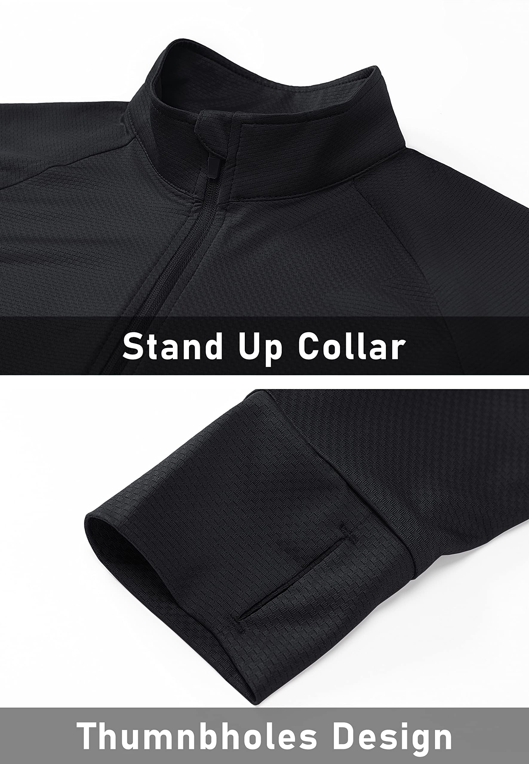 • STAND UP COLLAR & THUMB HOLES: Athleisure stand up collar provides extra sun protection for your neck. Thumbholes keep the sleeves in place and extend coverage to hands for sun protection.