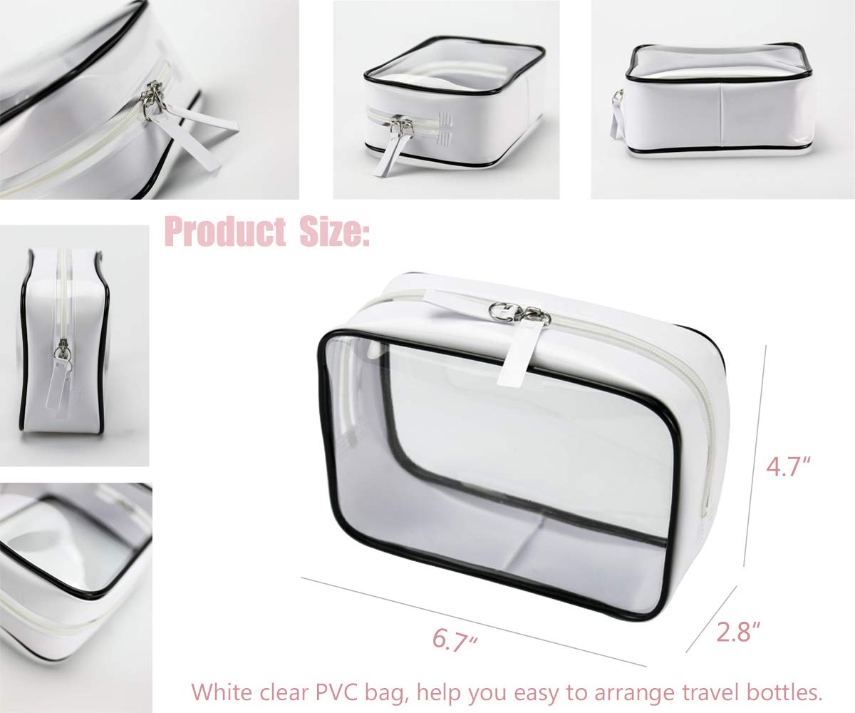 Details: Brand: MAGIGO About the product: 1) TSA Approved which means the bottles are permitted to carry on airplanes. 2) MATERIAL SAFETY - 100% BPA Free Food-Grade imported PG, PETand PVC. Non-toxic, tasteless, safe and TSA Approved. These travel bottles are refillable and reusable. 3) Premium, transparent, leak proof and waterproof to hold all your things, no worry for spill out. 4) It comes with a white clear bag, made of durable PVC material, easy to clean and portable. 5) Pre-painted labels can simply help to distinguish moisturizing lotion, cleansing milk, makeup, cream, body oil, gels, etc. 6) Light and small size make you easy travel. Package includes: ● 2 x 3.4oz (100ml) squeeze bottle ● 1 x 2oz (60ml) squeeze bottle ● 2 x 1oz (30ml) squeeze bottle ● 1 x 1oz (30ml) pump bottle ● 1 x 1oz (30ml) serum pump bottle ● 1 x 1oz (30ml) spray bottle ● 2 x 1.05oz (30g) cream jars ● 1 x clear PVC zip pouch ● 1 x pipette ● 1 x funnel ● 1 x mini spatula ● 2 x pre-painted labels Portable bag measures: L 6.7” x H 4.7” x W 2.8” (17cm x 12cm x 7cm) 100% CUSTOMER SATISFACTION GUARANTEE - MAGIGO are committed to provide our customers high-quality products with the best service after sale. If the zip bag, the bottles or the jars was broken, just feel free to contact us, we will resend new replacement to you very soon.Please contact us with any qeustion about any MAGIGO products.