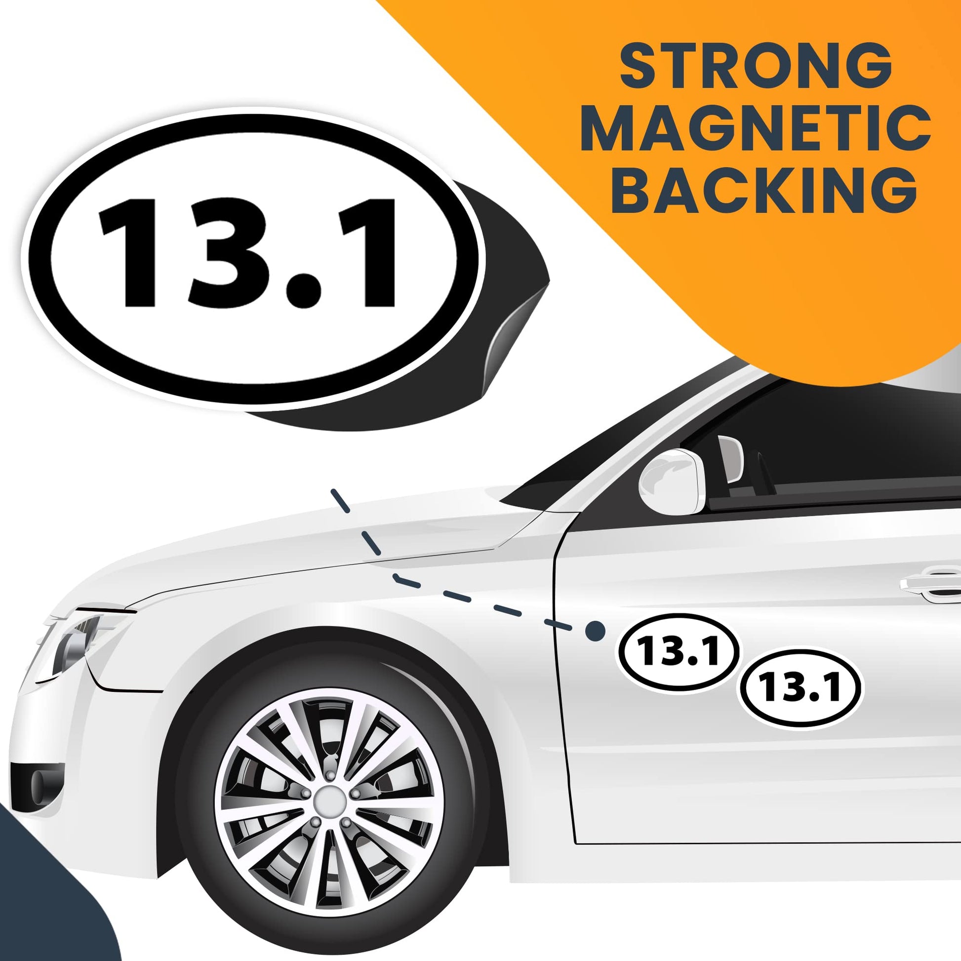 Magnet Me Up: 13.1 Half Marathon Black Oval Magnet Decal - 4x6 Inches - 2 Pack - Heavy-Duty Automotive Magnets for Car, Truck, SUV - Runner's Pride Magnets - Show Your Achievement