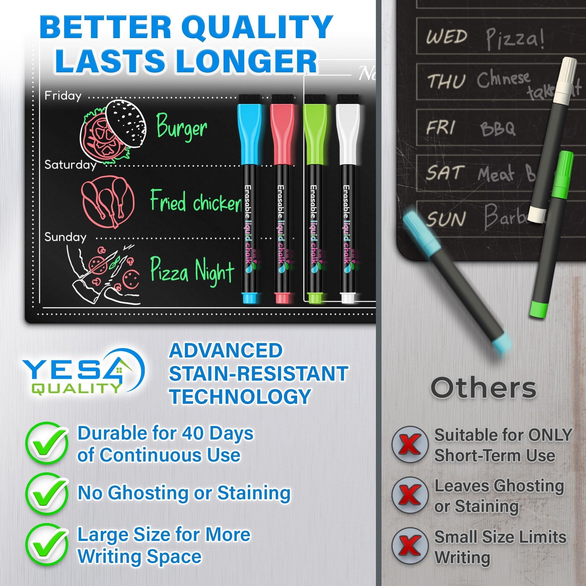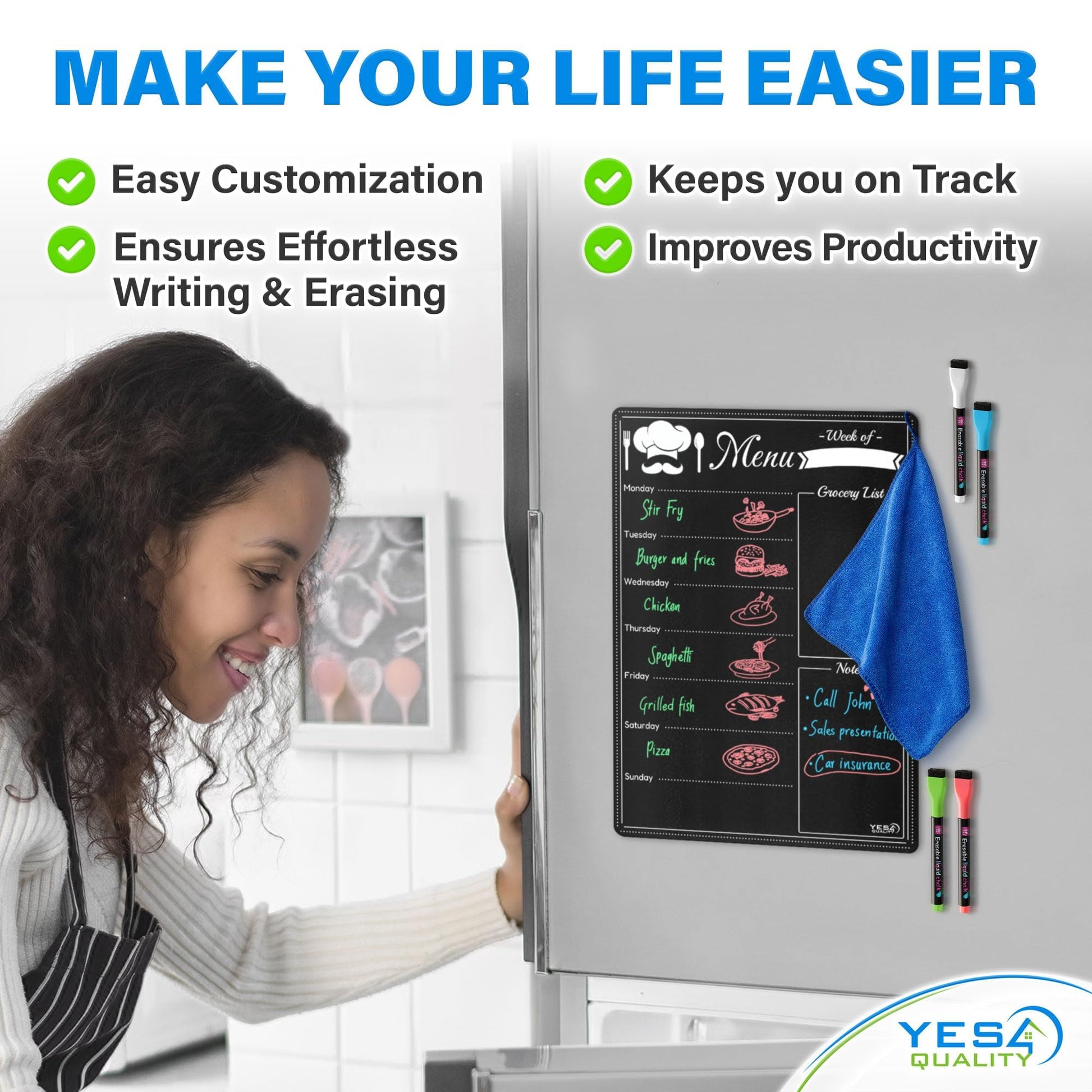 Magnetic Dry Erase Menu Board for Fridge (16x12) - Weekly Meal Planner Blackboard w/ 4 Magnetic Chalk Markers & Wiping Cloth - Chalkboard Organizer for Dinner Menus & Grocery Lists by Yes4Quality
