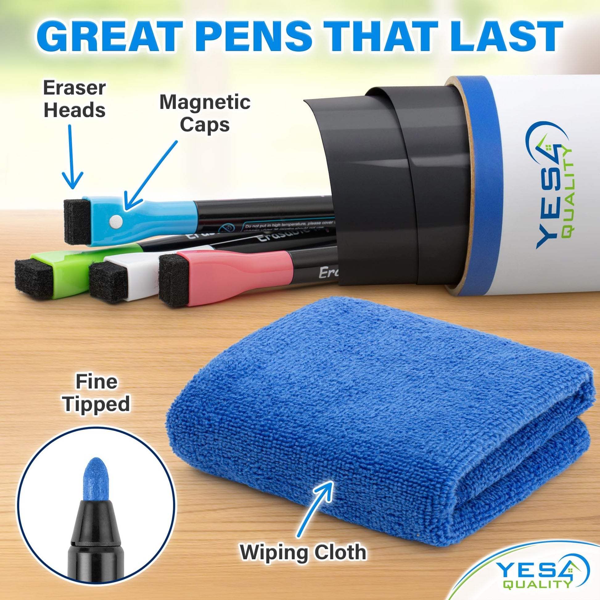 • WEEKLY MENU - The weekly layout lets you plan each meal of the week, whether it's breakfast, lunch, or dinner, you can easily outline your family's menu; Plus, it comes with 4 fine-tip vibrant neon liquid markers and 1 eraser cloth for cleaning convenience