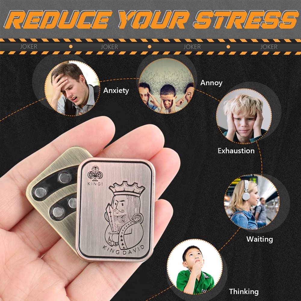 • 【Excellent Fidget Sliders】- The poker Fidgets Slider toys is entirely made of zinc alloy. The front and back of the slider are beautifully engraved with Skull and Poker King K, respectively. The color of the metal is processed by the electroplating process, so the color of the upper metal body is copper, and the color of the lower metal body is brass. Every detail of the slider has been precisely machined, and the surface treatment is delicate and smooth, making it more comfortable to hold.