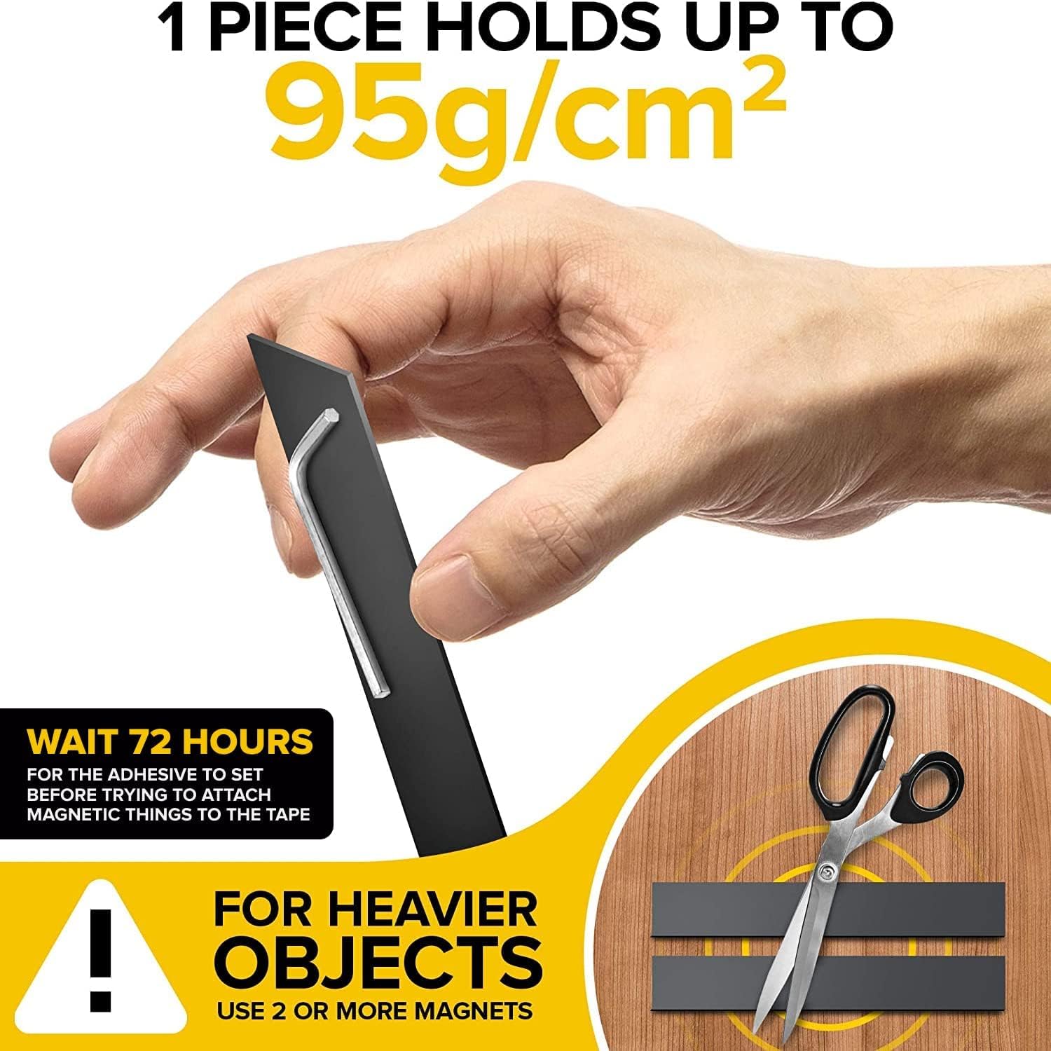 • MULTIPURPOSE USE: Sticky magnetic strips can be used as magnetic tool holder strip, knife magnetic strip, magnetic key holder for wall, refrigerator tool organizer, magnetic strips for wall, peel and stick block magnets, knives self-adhesive flat block magnets, magnetic squares, magnetic dots, magnetic garage tool, magnetic screw holder