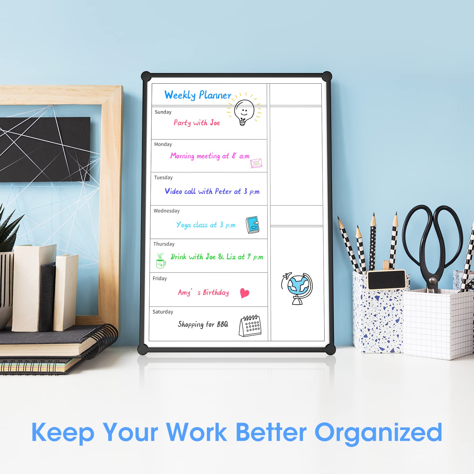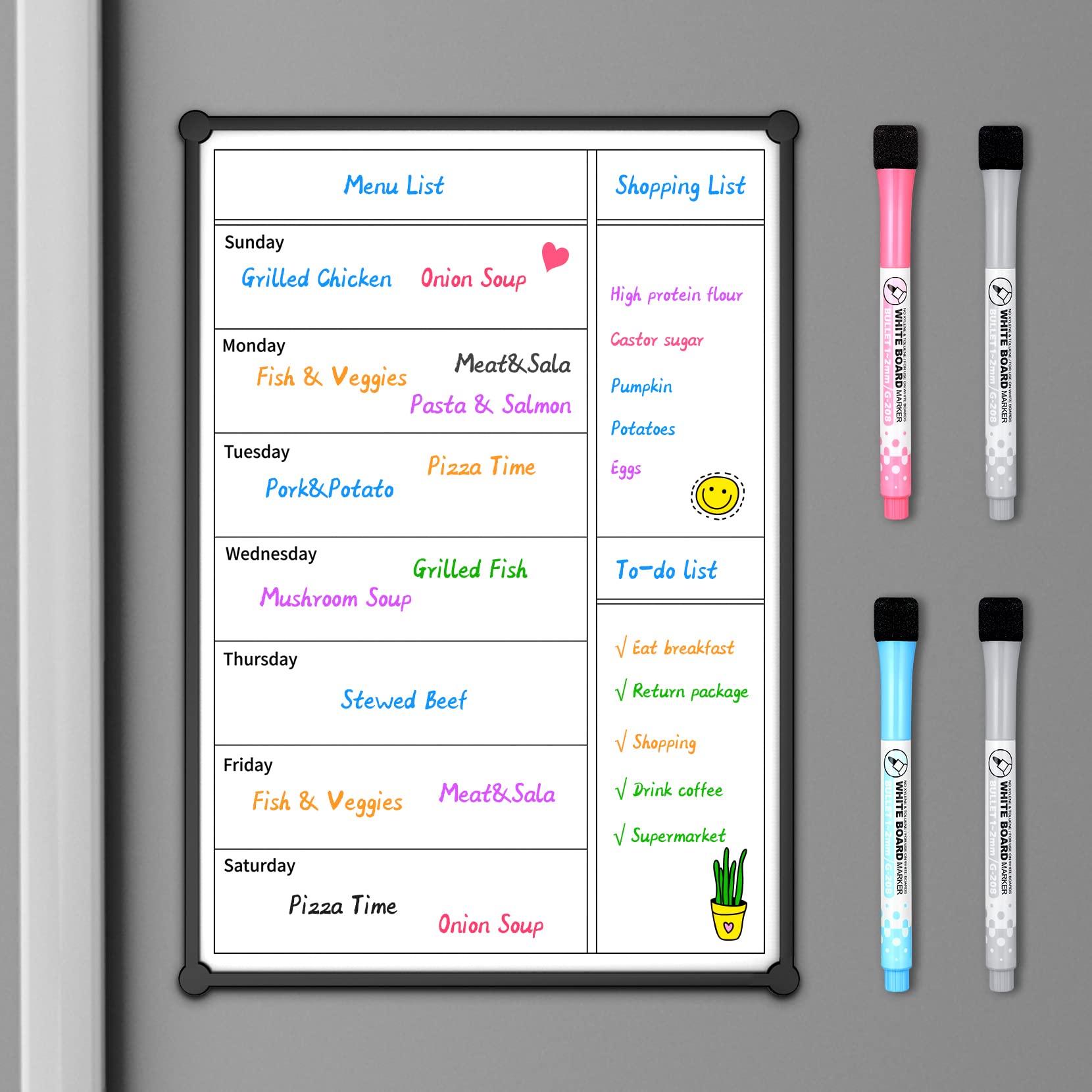 Magnetic Weekly Calendar for Fridge,12×8” , Doubleside, Grocery List, Kitchen Menu Planner Board for Fridge/Locker, 4 Marker