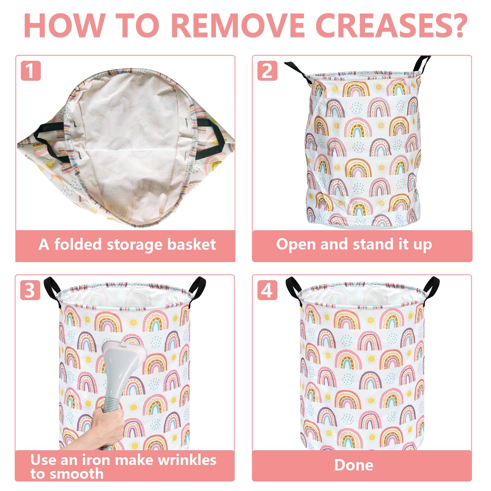 • IMPORTANT NOTE:The kids baby laundry hamper basket comes with compression packing which may result in wrinkles during long-distance transportation. It will recover after a period of time and can also become smooth by steam iron or hairdryer
