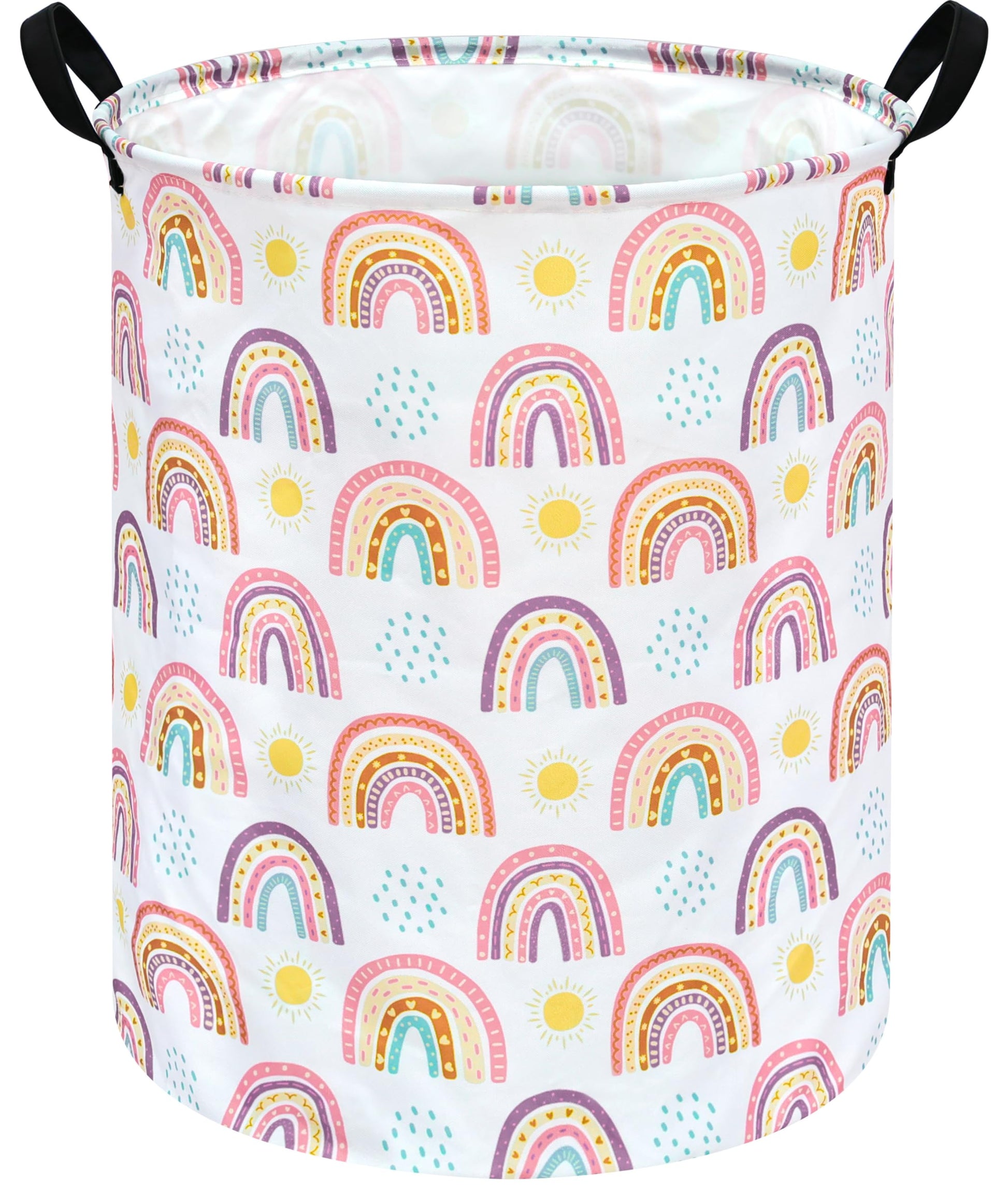 MAIZMZ Kids Rainbow Hamper Laundry Basket Storage Bins Gift Organizer Clothes Toy Box Large Canvas Collapsible Chest for Home/Dorm/Kitchen/Pet/Office/Closet/Shelf/Room Decor
