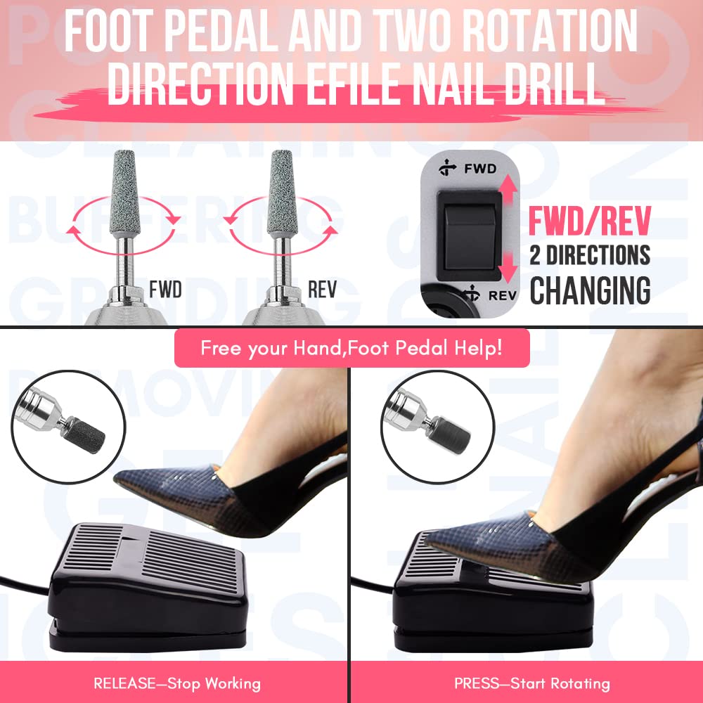 • Easy for Beginners & Home Use Electric Nail Drill: We provide a tutorial video and instruction manual to assist you for use. The twist lock chuck system helps you replace grinding head easily. Suitable for both right &left- handed operators. Get a nail prep and remove nail gel quickly. Change your nail shape nail art at any time. Low cost but with salon-quality. Ideal for professional nail salon, studio and home use