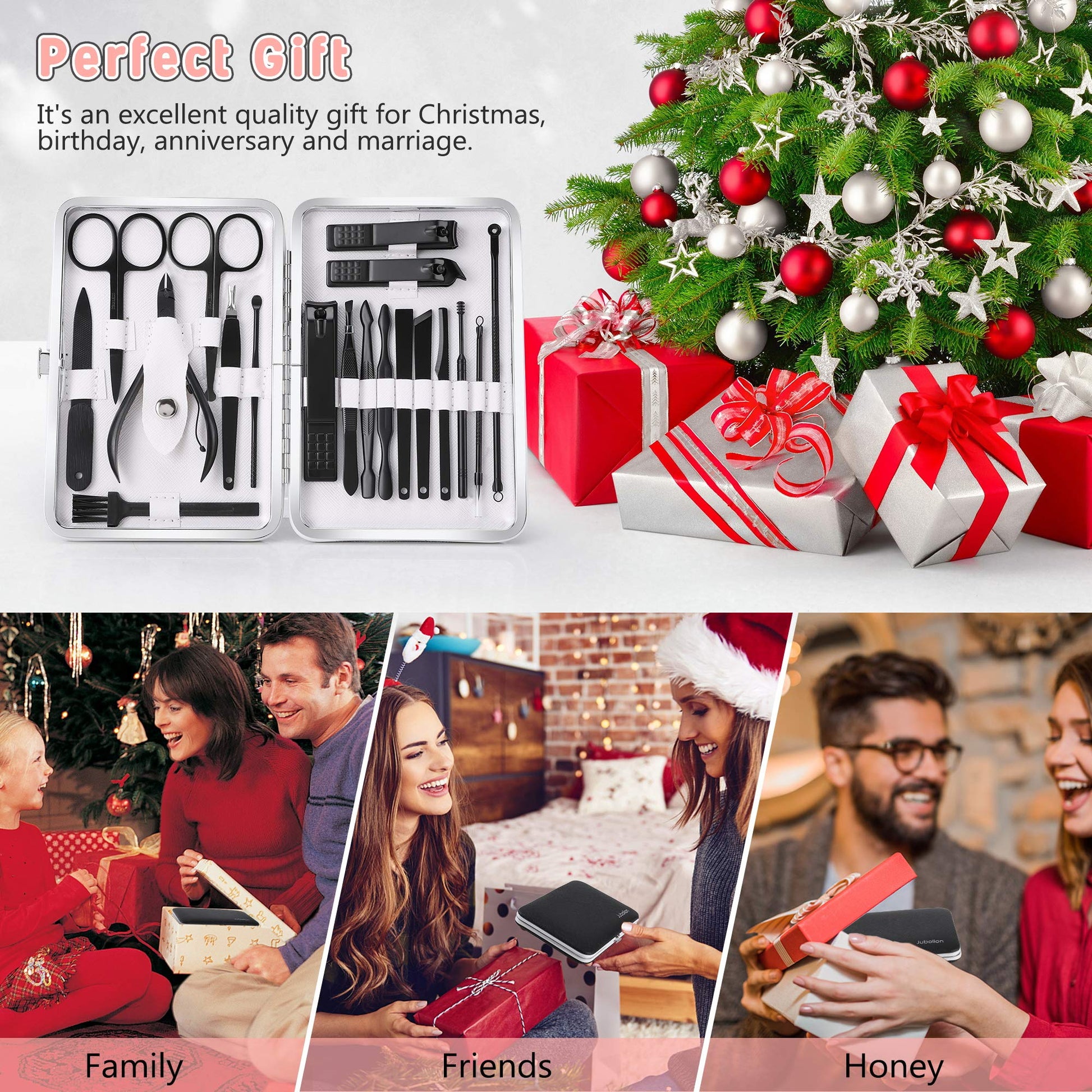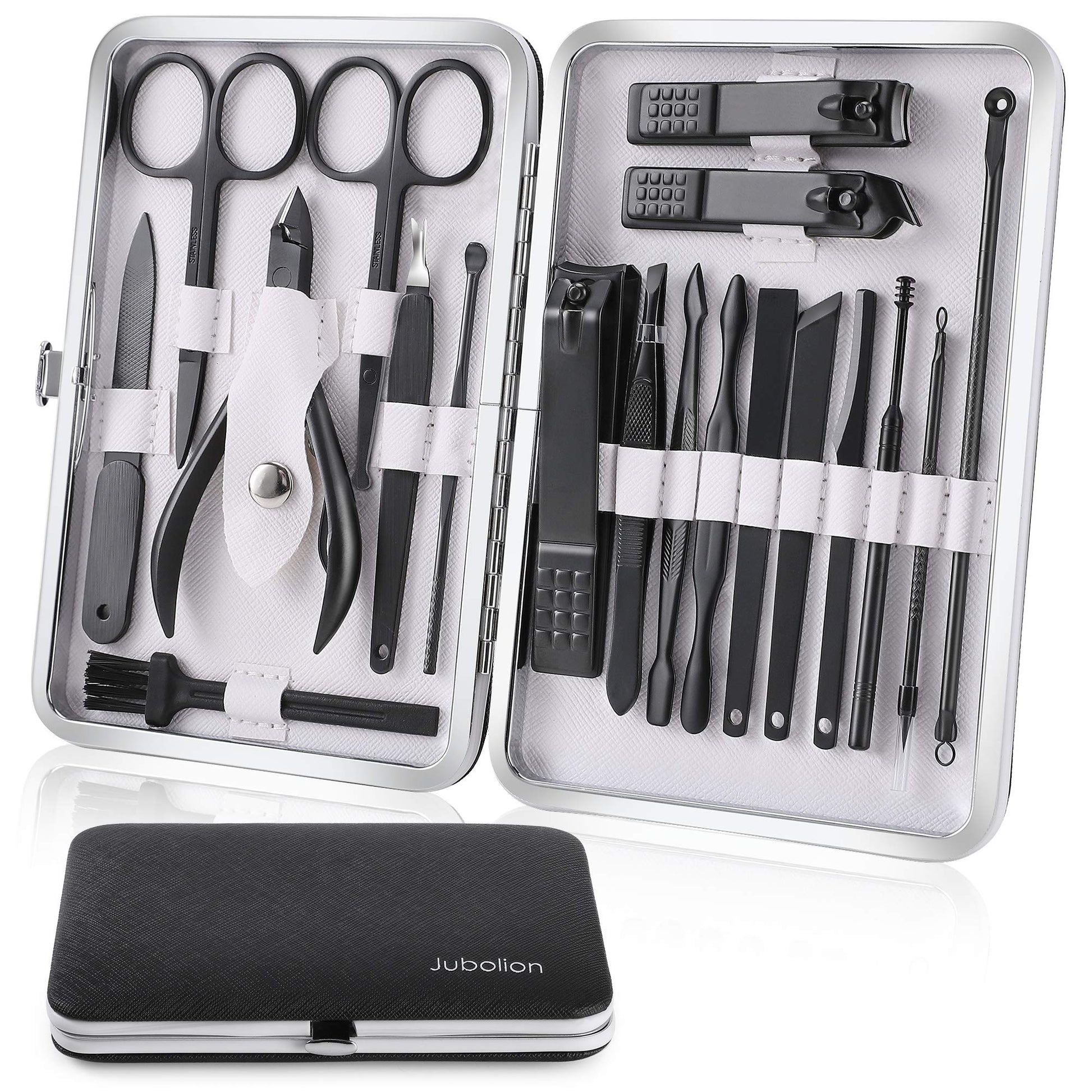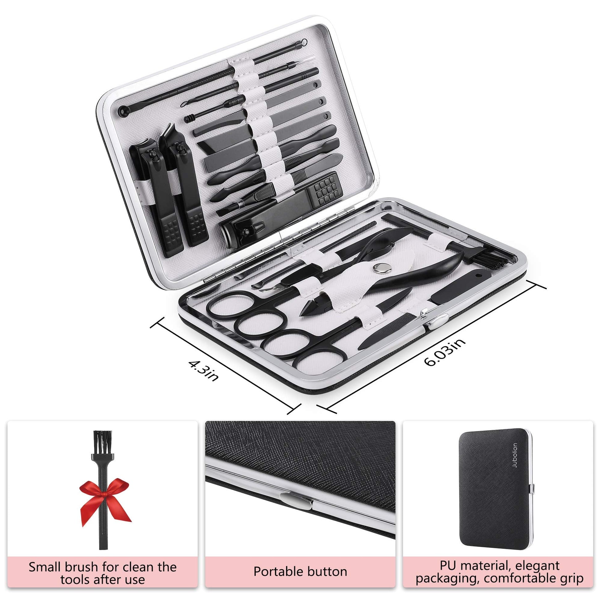 Manicure Set, Jubolion 19pcs Stainless Steel Professional Nail Clippers Pedicure Set with Black Leather Storage Case, Portable Grooming Kit for Travel or Home, Perfect Gifts Women and Men (Black)