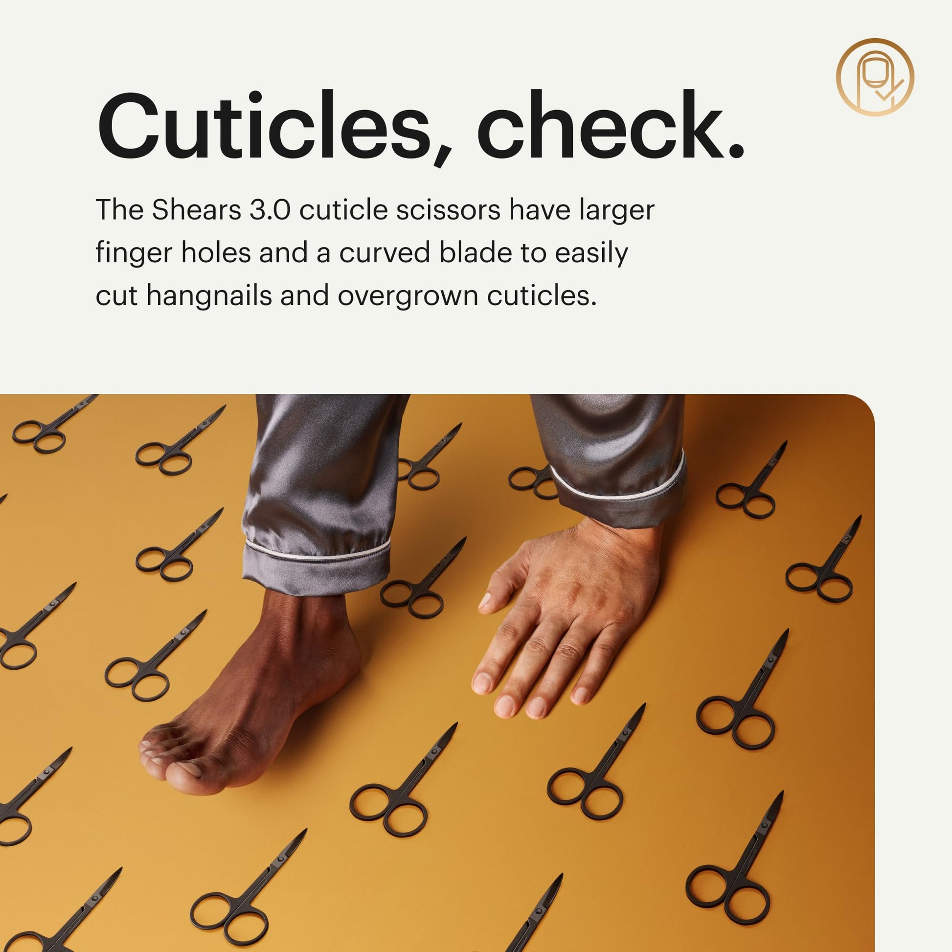 • CUTICLES, CHECK: The Shears 3.0 cuticle scissors have larger finger holes and a curved blade to easily cut hangnails and overgrown cuticles.