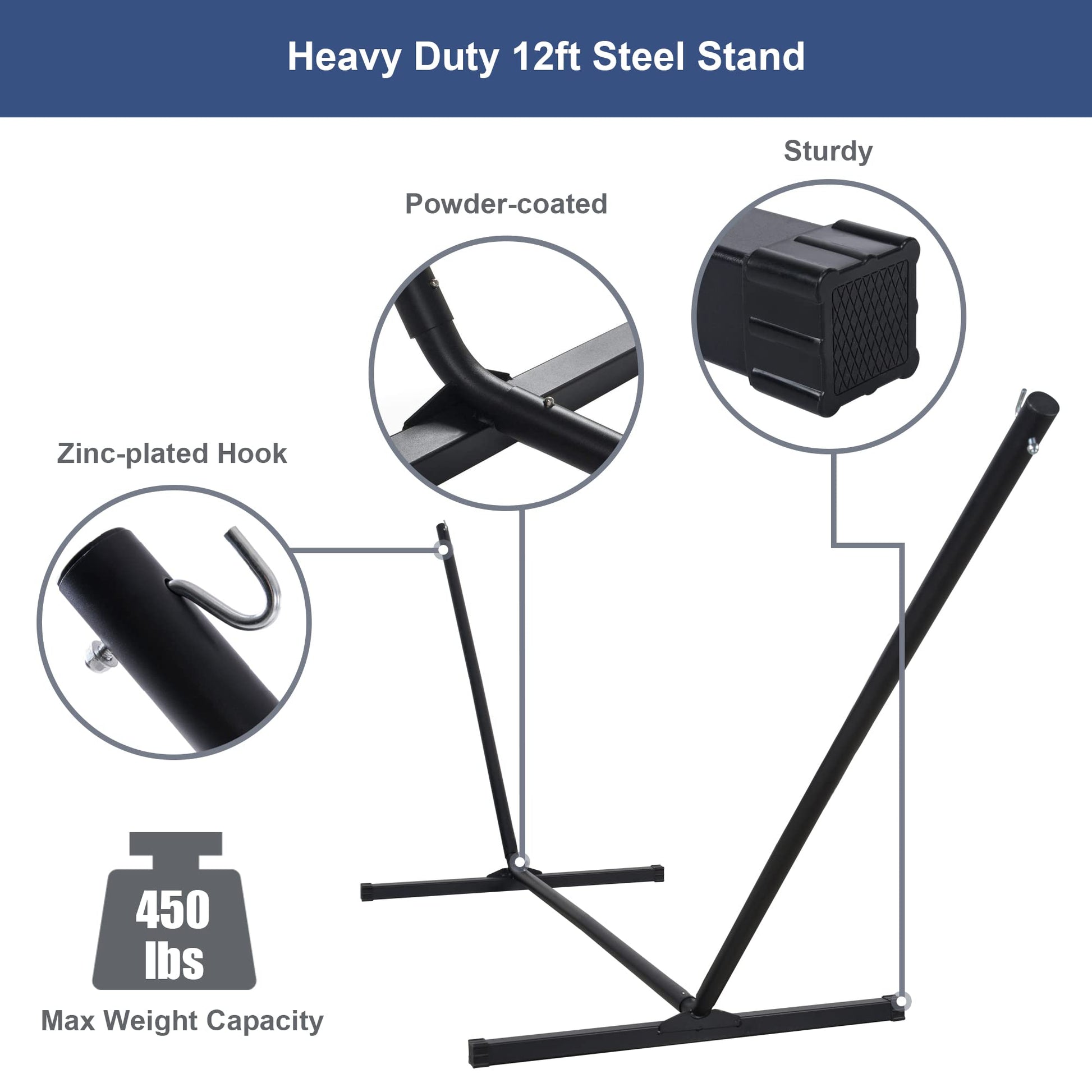 • Easy to Carry and Assemble: Thanks to the detachable spreader bars, this large hammock could be tightly rolled up and packed into the carrying bag, allowing you to take it on the go. Please note that the steel stand cannot be placed in the carrying bag. Besides, this two person hammock with stand could also be set up in seconds without any tools