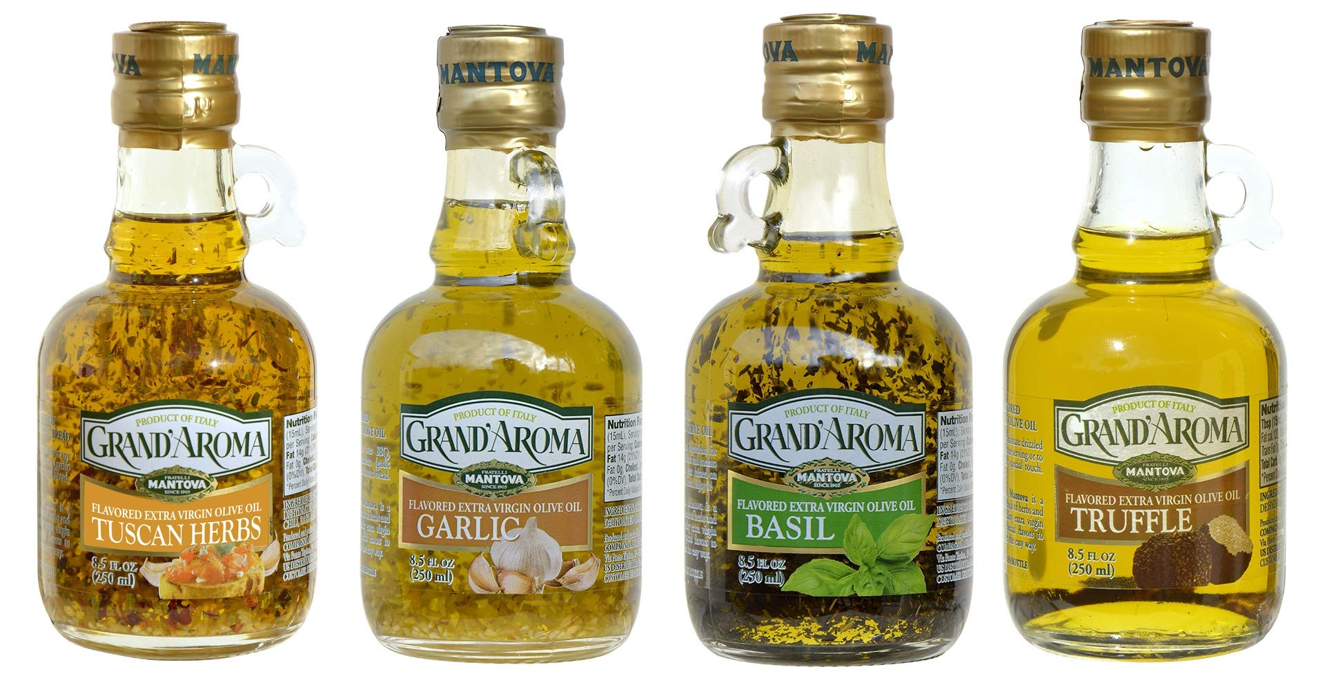 Mantova Grand’Aroma Flavored Extra Virgin Olive Oils, Variety Gift Set, made in Italy, cold-pressed, 100% natural, heart-healthy, for grilling, barbequing, smoking, and cooking, 8.5 oz