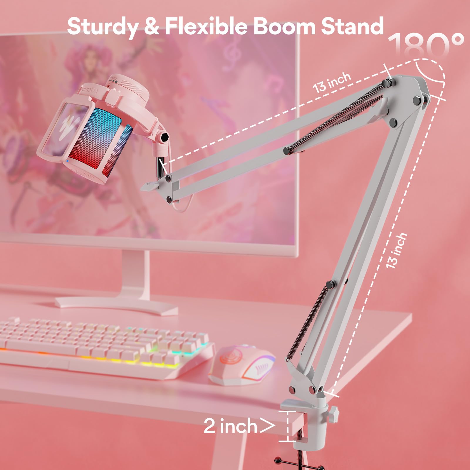 • WHAT YOU GET - The USB gaming PC microphone set package includes, USB condenser microphone*1, Metal Boom arm stand*1, Shock mount*1, Pop filter*1, USB and USB C cable*1, Desktop Clamp*1, User's Manual*1