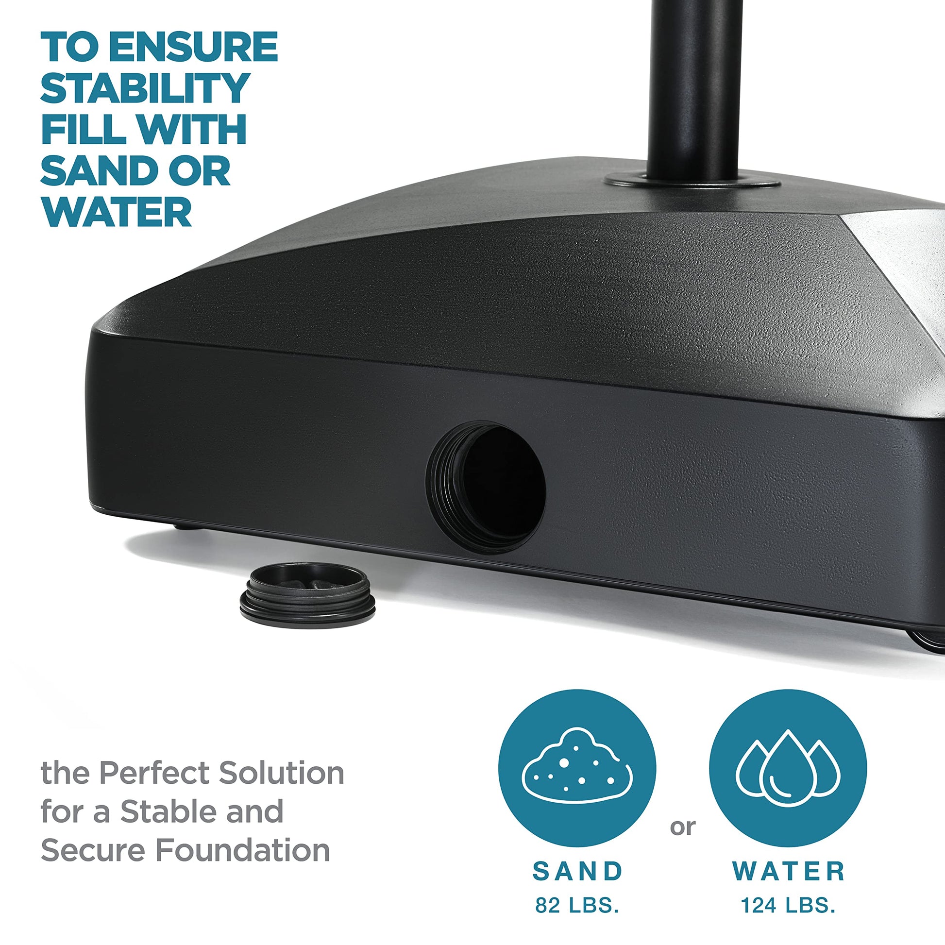 • Windproof Design - This windproof weighted umbrella base can be filled with up to 123 lbs. of sand or 37 liters of water to keep your umbrella upright and in place during windy conditions.