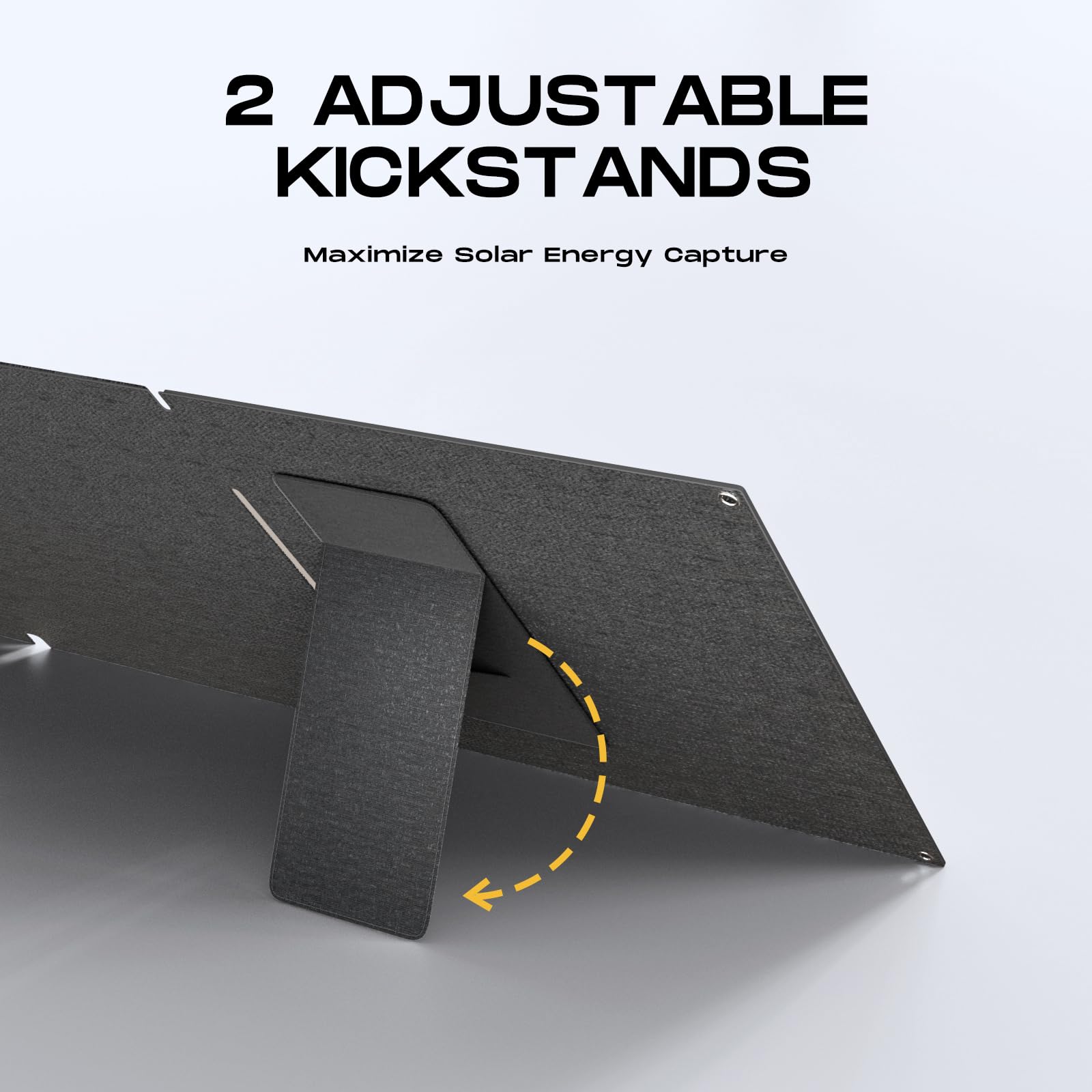 • 3-FOLD, PORTABLE & FOLDABLE: This solar panels portable 100 watt is lightweight and compact, folding down to just 14'' x 15.6'' x 1.18'' and weights just 6 lbs—about the size and weight of a 15'' laptop. The travel solar panel is easy to carry under your arm, perfect for travel, camping and outdoor use. With 2 integrated adjustable kickstands, the portable solar panels let you tilt the panel from 0° to 180°, capturing up to 23% more sunlight compared to lying flat. NOTE: The folding solar panel cannot store electricity.