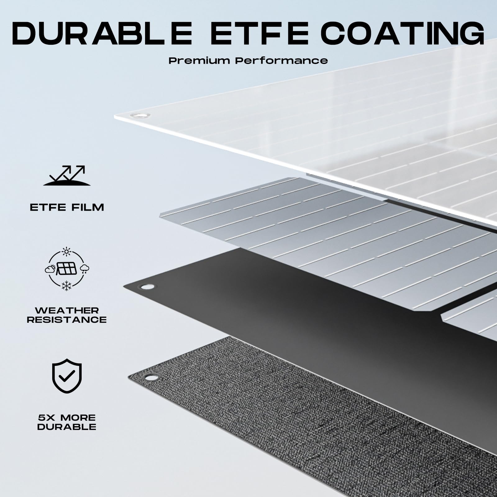 • MORE THAN, >23% OUTSTANDING CONVERSION EFFICIENCY: MARBERO 100W solar panel for camping features premium A+ monocrystalline silicon solar cells with an EFTE coating. This 100W solar panel portable boasting an exceptional >23% of solar energy into electricity.