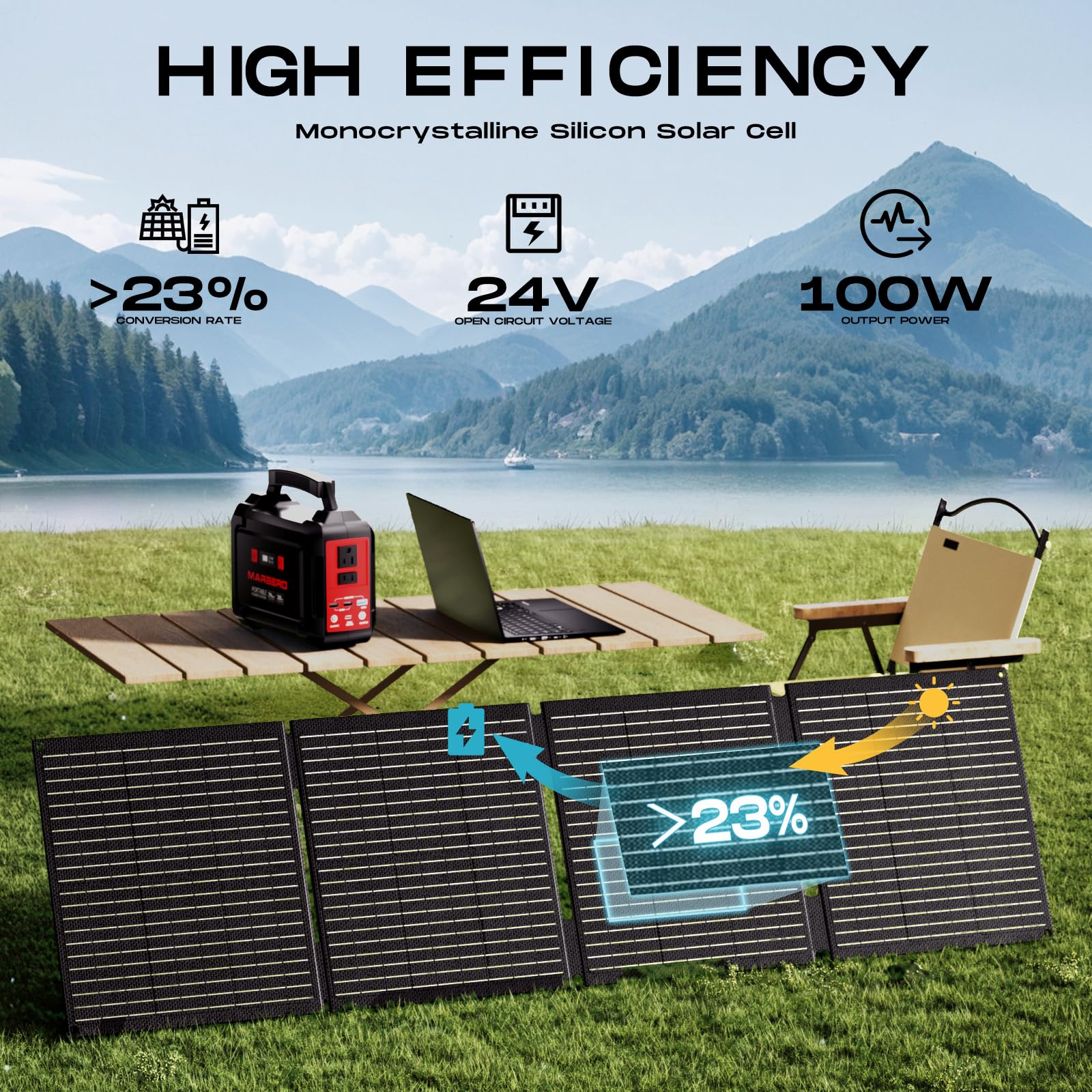 MARBERO 100W Portable Solar Panel 100 Watt 20V Foldable Solar Panel Charger for Power Station QC3.0 USB & DC Output >23% High Efficiency IP68 Waterproof for Camping Outdoor Home RV Blackout Cloudy