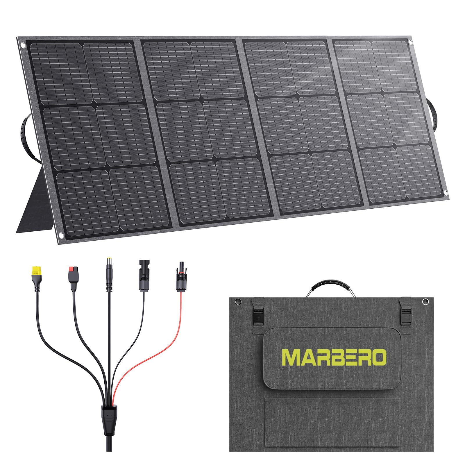 MARBERO 200W Portable Solar Panel for Power Station & DC Devices 200 Watt Foldable Solar Charger >23% High Efficiency IP68 Waterproof Compatible with Solar Generator for Camping RV Outdoor Cloudy
