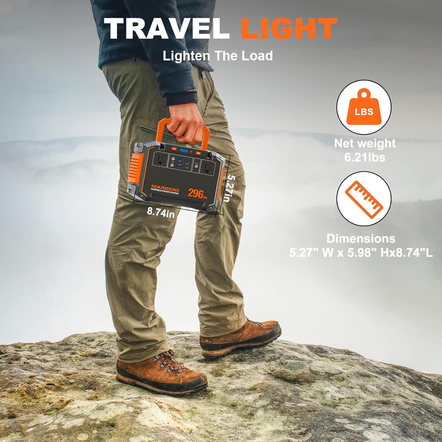 • PORTABLE & CONVENIENT: The M638 Solar Generator with Solar Panel is designed for ultimate portability. With its compact size of 8.74 x 5.27 x 5.98 inches and a lightweight design at just 6.21 lbs, it easily fits into your backpack, car, or suitcase. Whether you're camping, traveling, or need a dependable power source for emergencies, the M638 MAX is the perfect companion, providing reliable power.