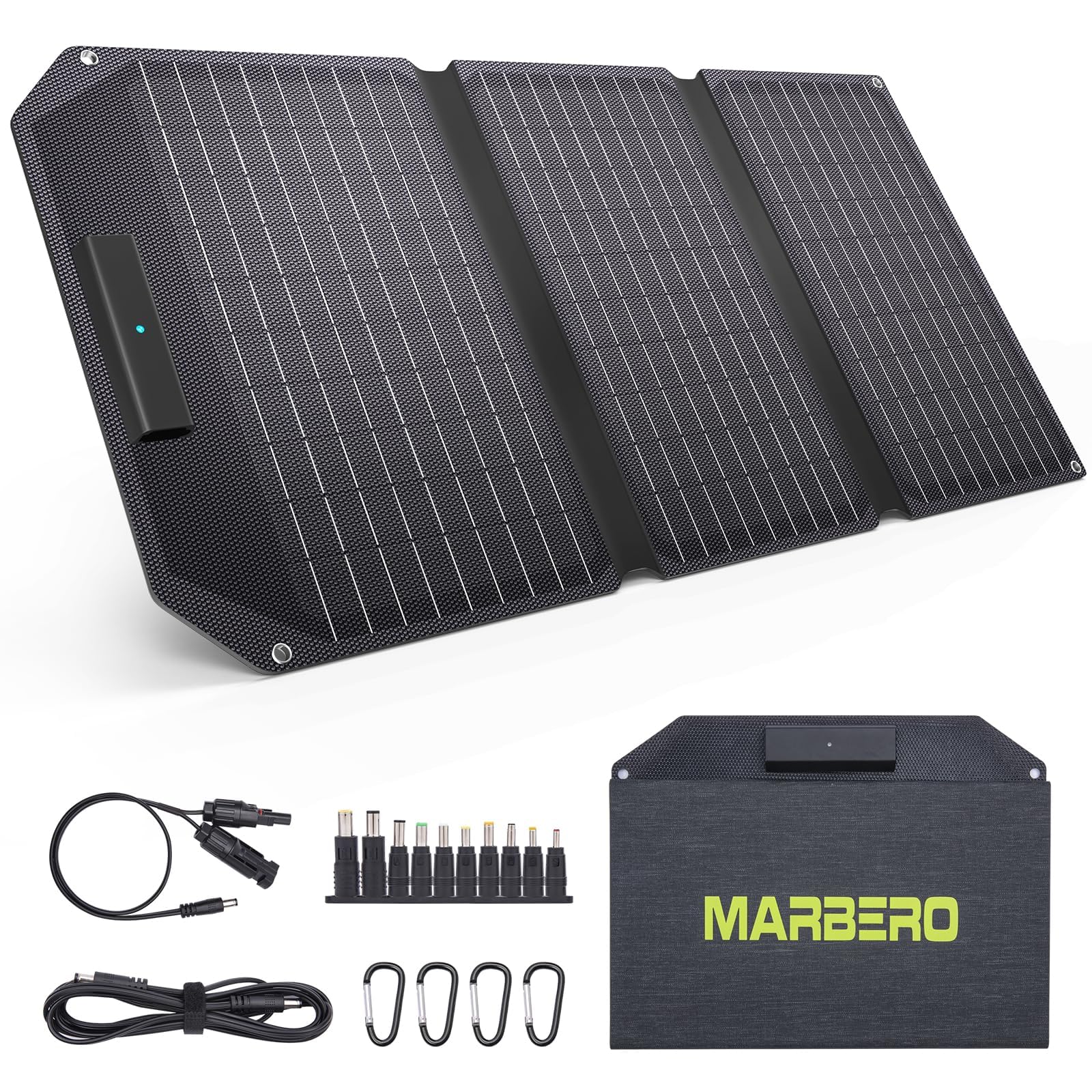 • WHAT YOU GET: 1 x MARBERO 30W Foldable Solar Panel Charger, 1 x 10-in-1 DC Adapters, 4 x Carabiners, 1 x 1.6 ft DC5521-to-MC4 Cable, 1 x 6.56 ft DC5521-to-DC5521 Cable, 1 x User Manual.24-month worry-free surppot, and our friendly customer service.