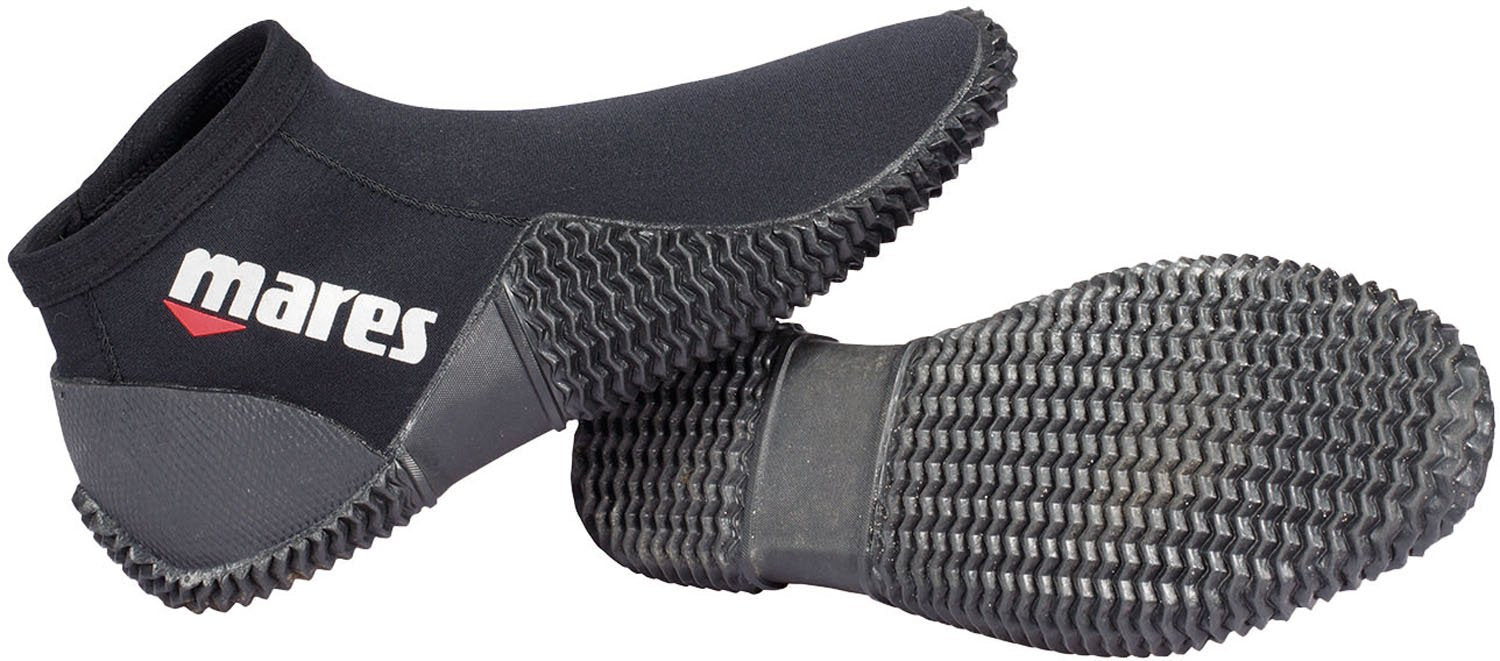 Details: Mares Equator 2mm Molded Sole Boots are perfect for diving and other water sports. Boots are made from 2mm Nylon II Neoprene Rubber that protects your feet from the environment, chaffing from fins and the hard surface found on personal watercrafts. The Low Cut Design will not overheat you feet in warm water and the Molded Sole makes them great for wearing around the beach and walking on rocks or coarse sand. The Low Cut Design also makes them easy to slip on and off.