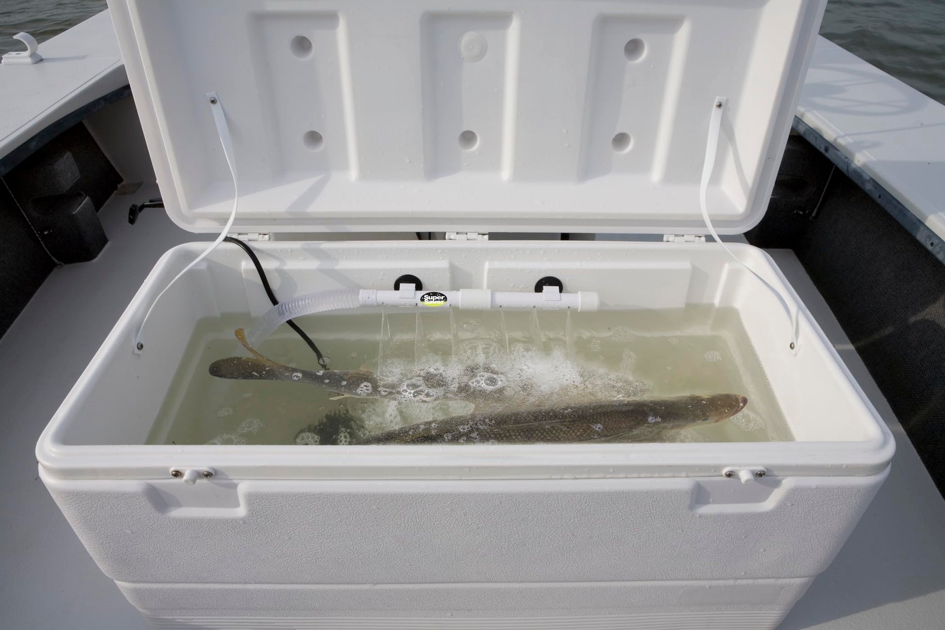 • OXYGENATION & BILGE PUMP: The fish bubbler pump produces 99.5% saturation of dissolved oxygen by pumping water into and out of your live well, aerating the water, and doubling as a bilge pump and wash down