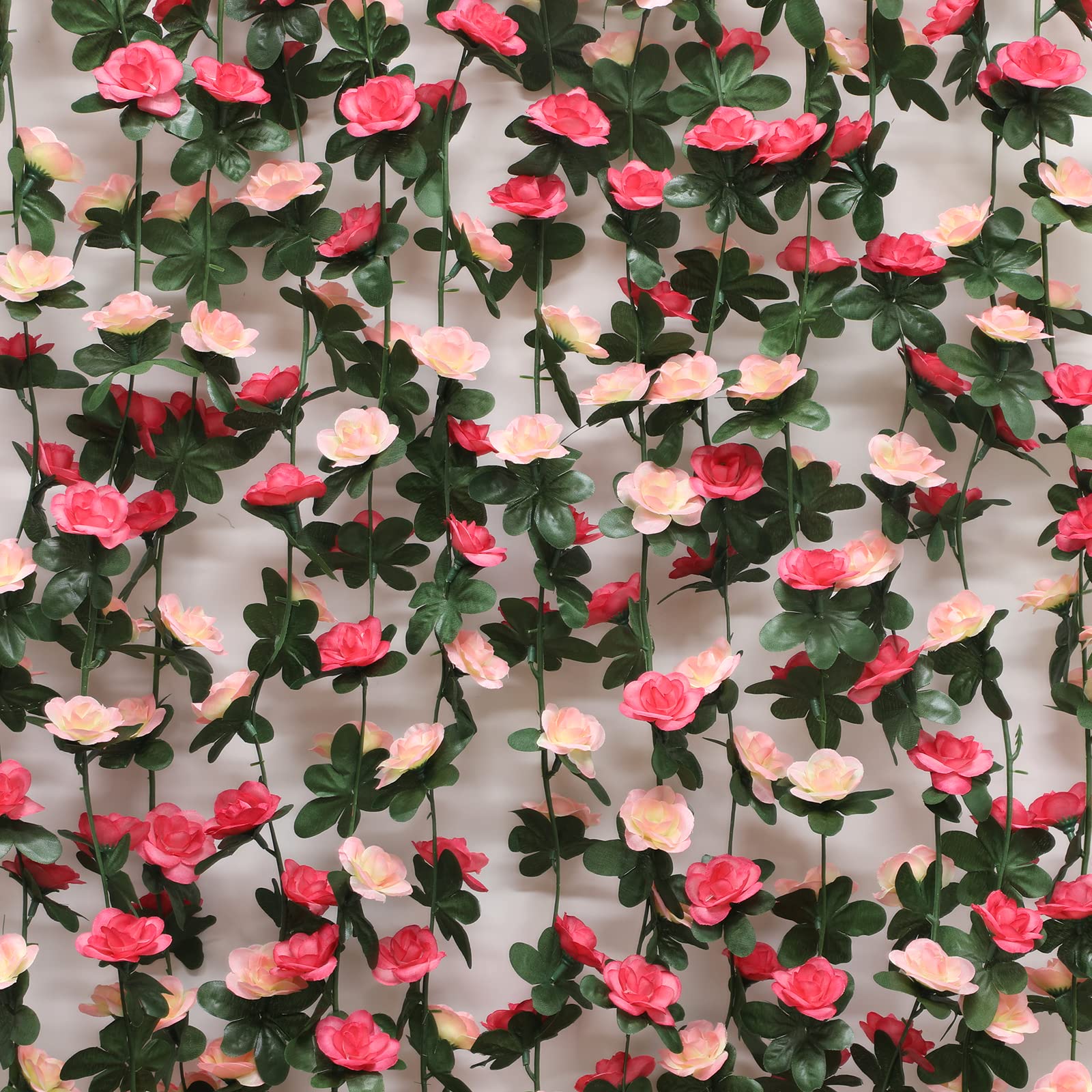 • 🌷PACKAGE INCLUDED: There are 2 strands flower garlands and 10 cable ties in the package. Each flower garland is 8.2 feet /2.5 meters long, and 2 strands are 16.5 feet /5 meters in total. 45 flowers and 45 leaves make up a rose vine, and the flower head size is 1.6inch. In the delicate outer packaging, flower vines are packaged independently to avoid entanglement.