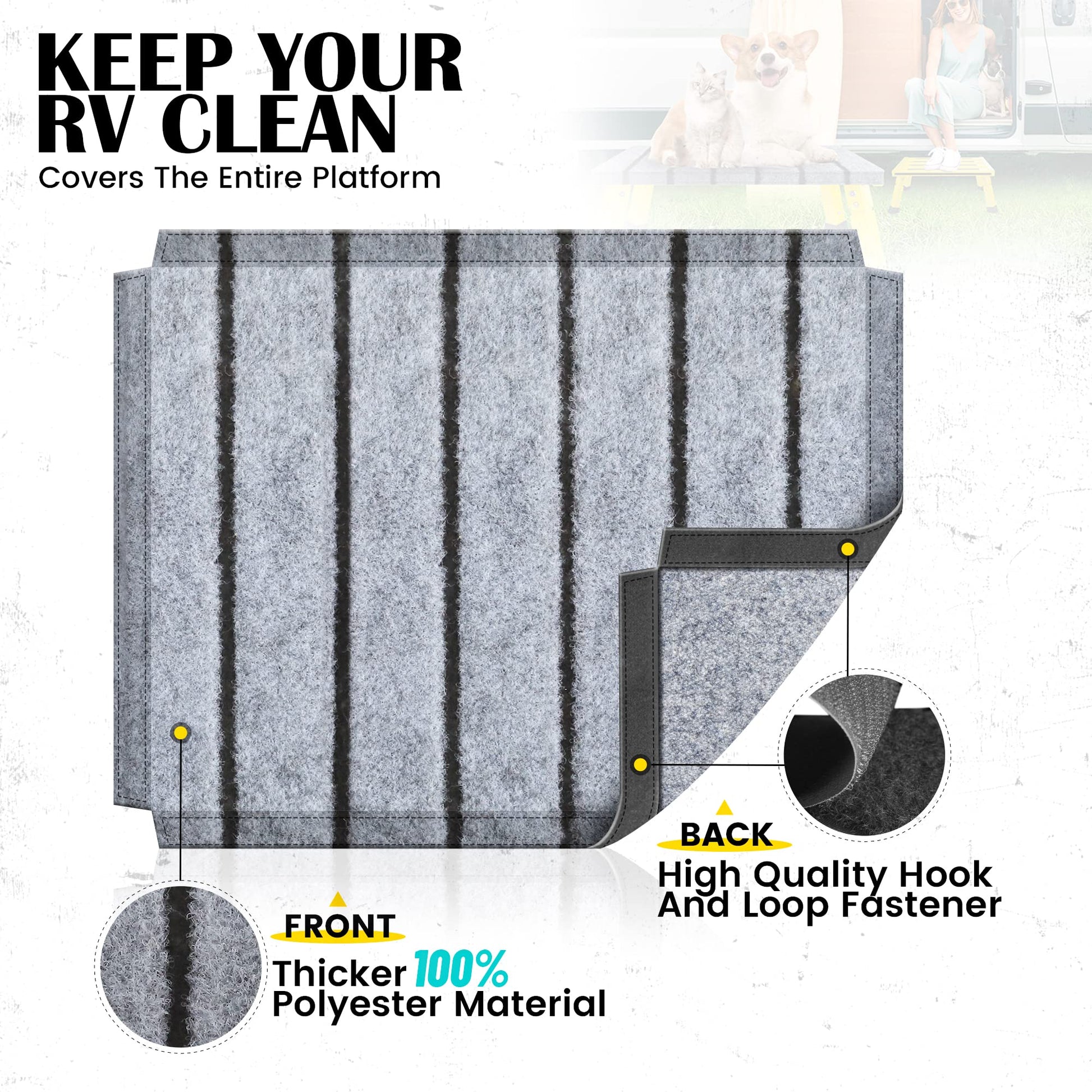 • A Must-Have Accessory for RV Owners: If you own an RV, this step stool is an essential accessory. It makes life easier, provides a safer and more comfortable stepping surface, and adds convenience to your RV setup. Don't wait, upgrade your RV adventures with this adjustable height stool today