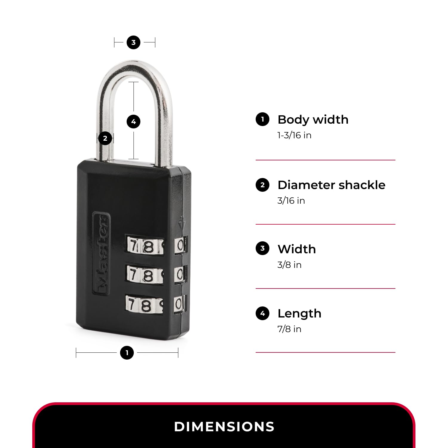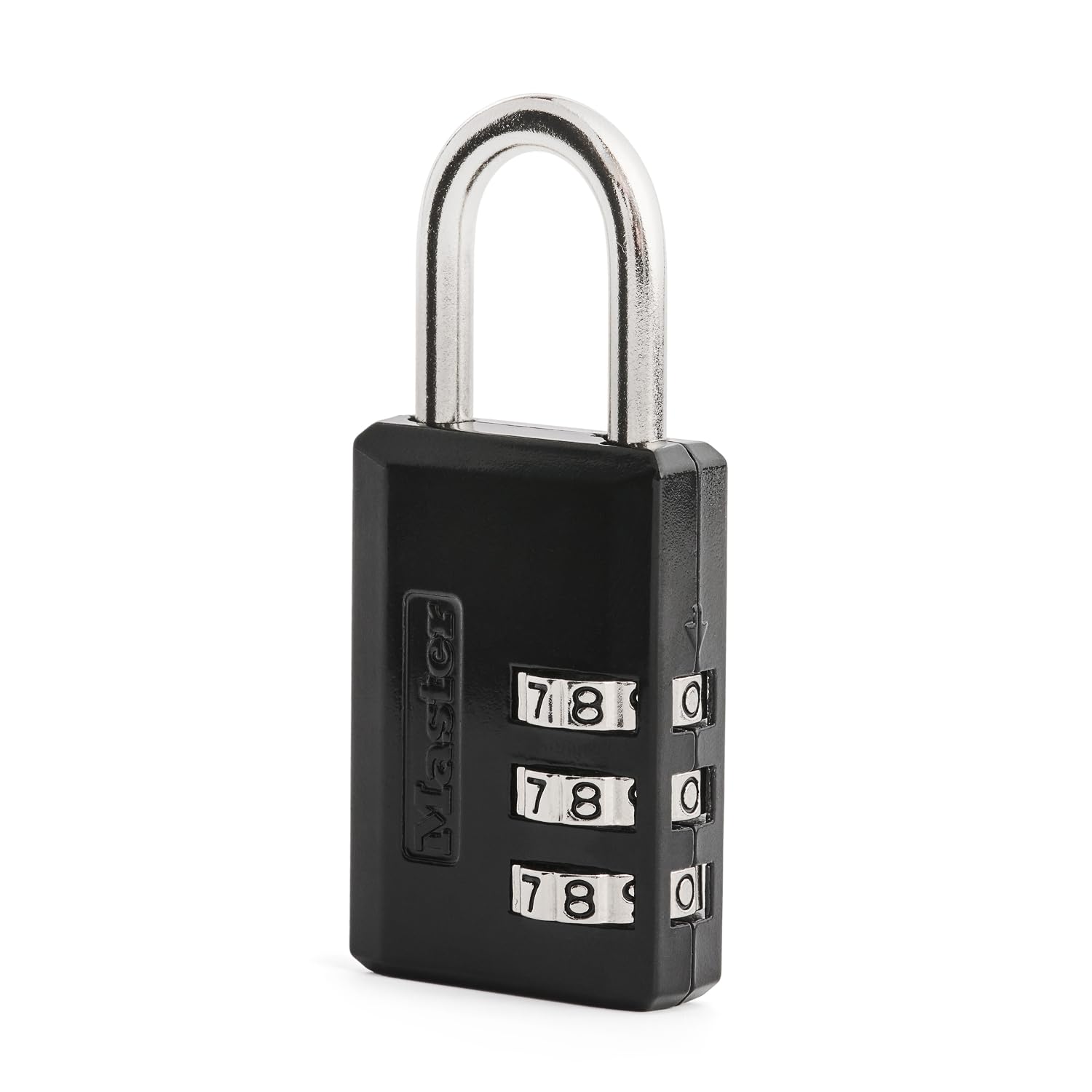 Master Lock Black Combination Padlock, Indoor Gym Locker Lock with Customizable 3-Digit Code for Luggage, Backpacks, Cabinets, 647D