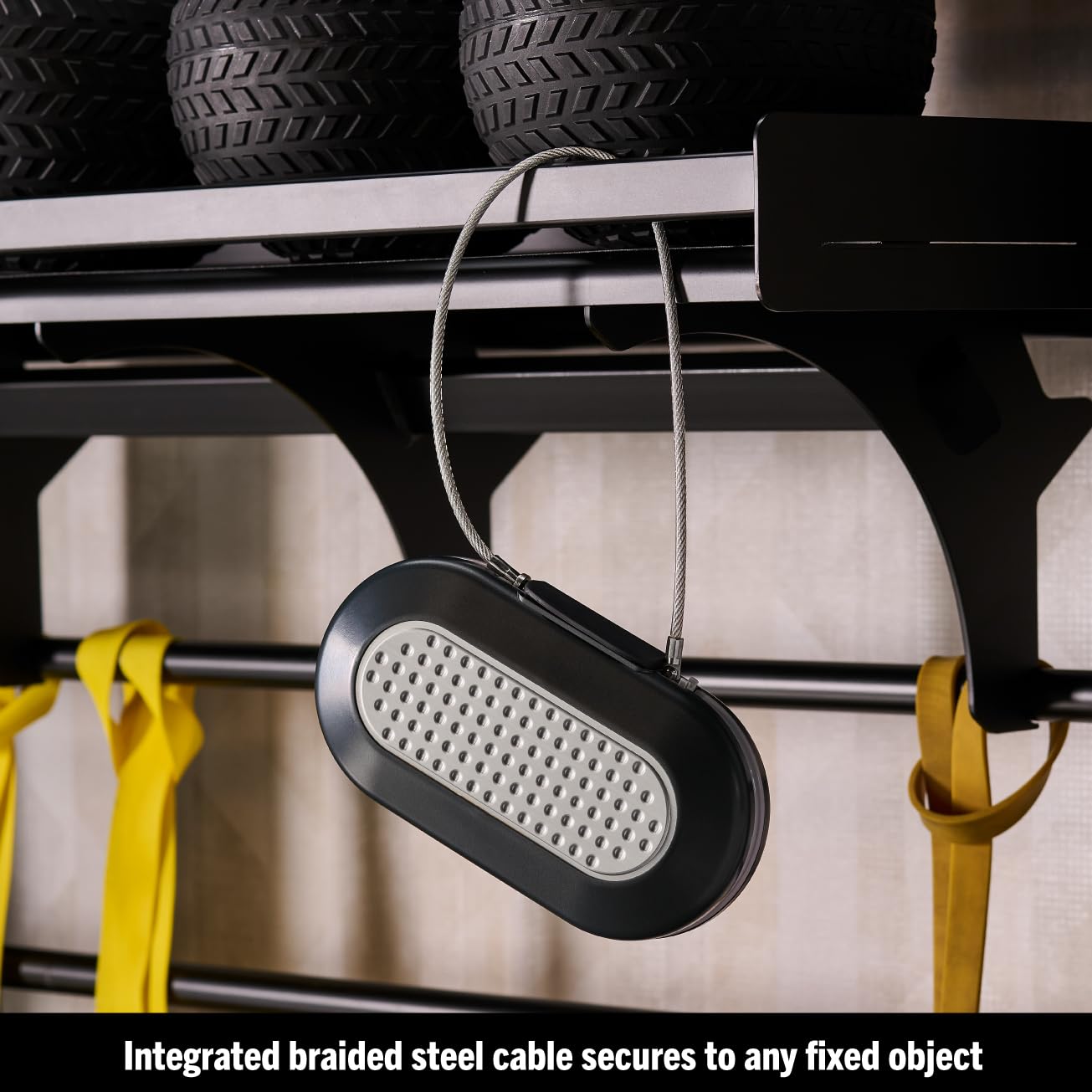 Details: The Master Lock 5900D Set Your Own Combination Portable Personal Safe features durable construction made to withstand abuse and is water resistant. The safe measures 2-1/5in (57mm) H x 9-2/5in (23.9cm) W x 5-1/10in (13.1cm) D; and is ideal for recreation, campus, office, travel or leisure use. The safe includes a cable to wrap securely around a fixed object or use as a carrying handle. The Limited Lifetime Warranty provides peace of mind from a brand you know and can trust.