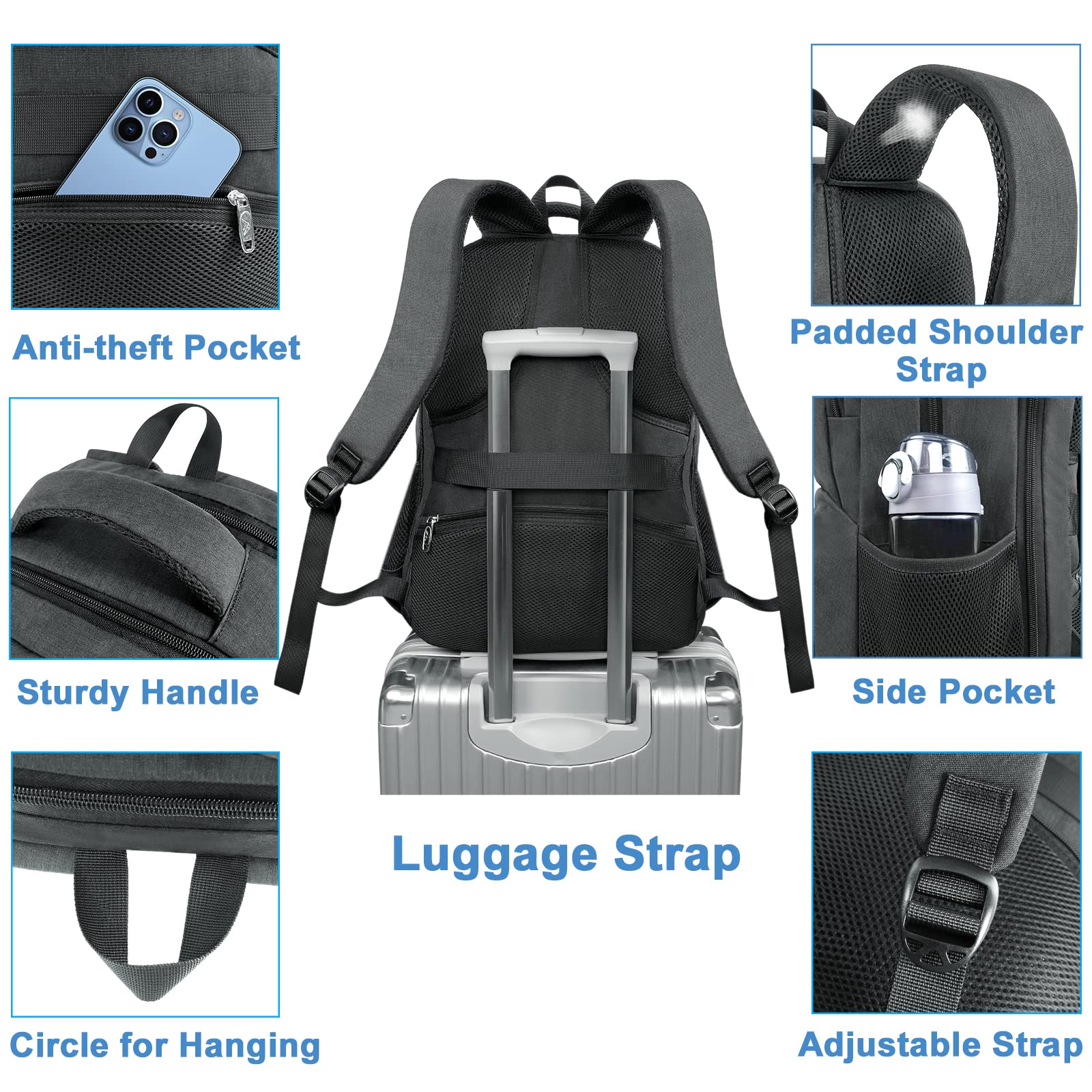 • Multiple Organized Pockets: The whole bag size: 21" H x 14" L x 9.1" W. The work backpack features 1 laptop sleeve compartment for 18 17.3 15.6 15 14 13.3 inch laptops, 1 main zipper pocket roomy for clothes, files, papers etc. 2 small front pockets for your daily necessities(1 groove & 1 key hook inside). 2 side pockets for umbrella or facial tissue. Large capacity laptop backpack is perfect for commute