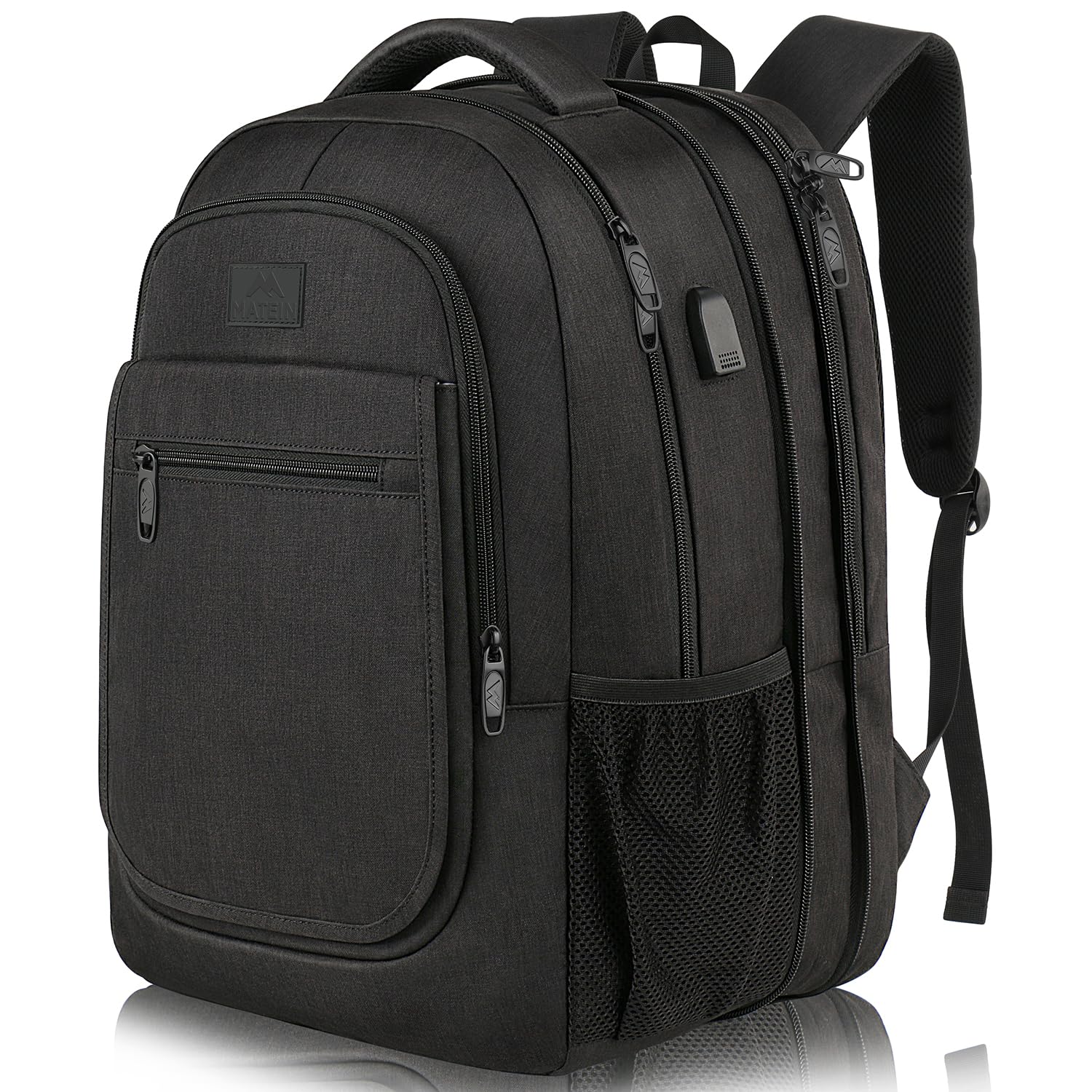 MATEIN College Large Travel Backpack, TSA Expandable Laptop Backpack with USB Charging Port, Anti Theft Computer Bag Fit 17.3 Inch Laptop Water Resistant College Computer Bag Gift for Men Women, Black