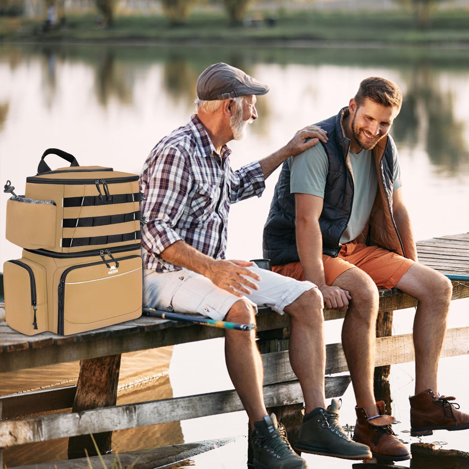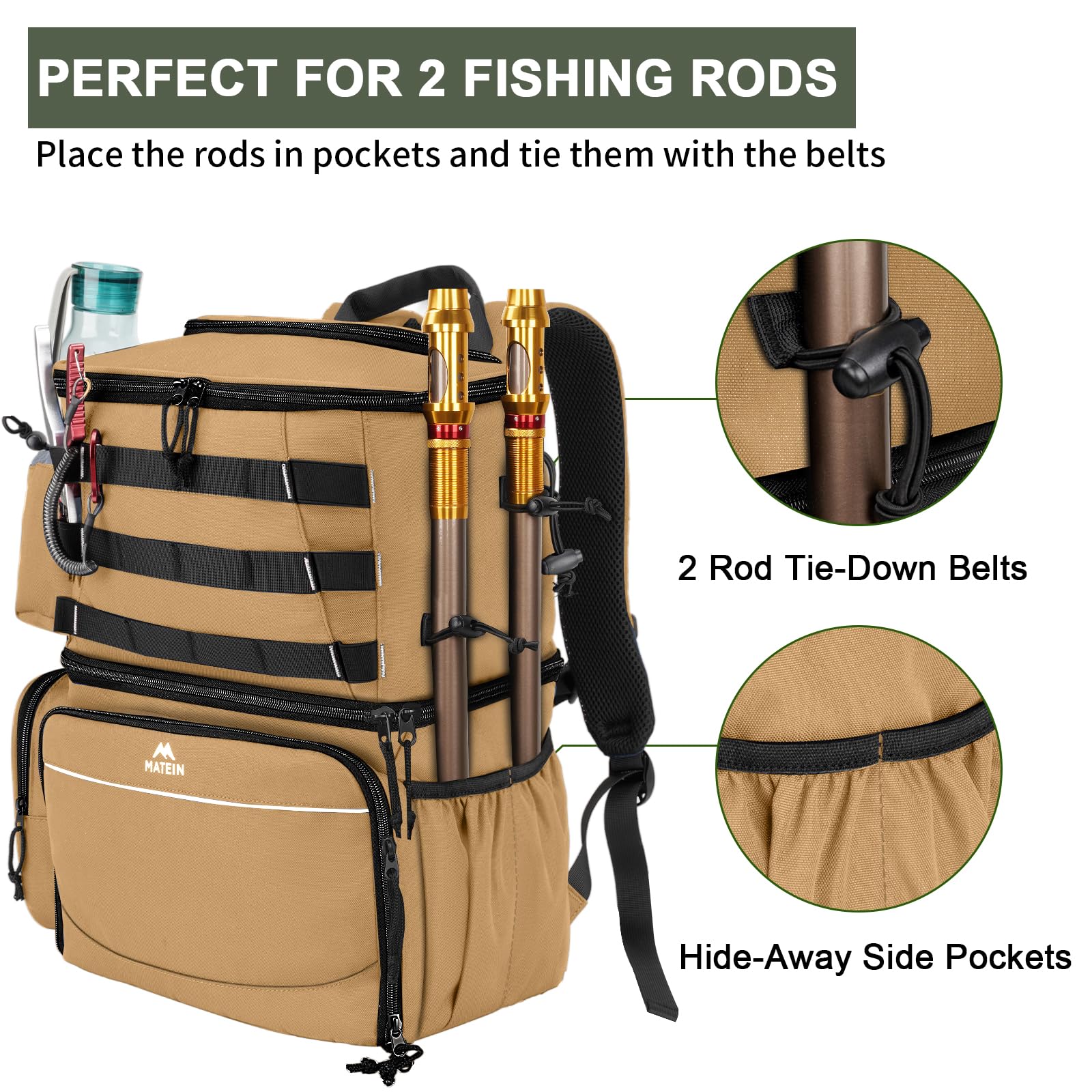 MATEIN Fishing Backpack, Water Resistant Fishing Tackle Box Bag with Rod Holders & Cooler, Gear Gifts for Men