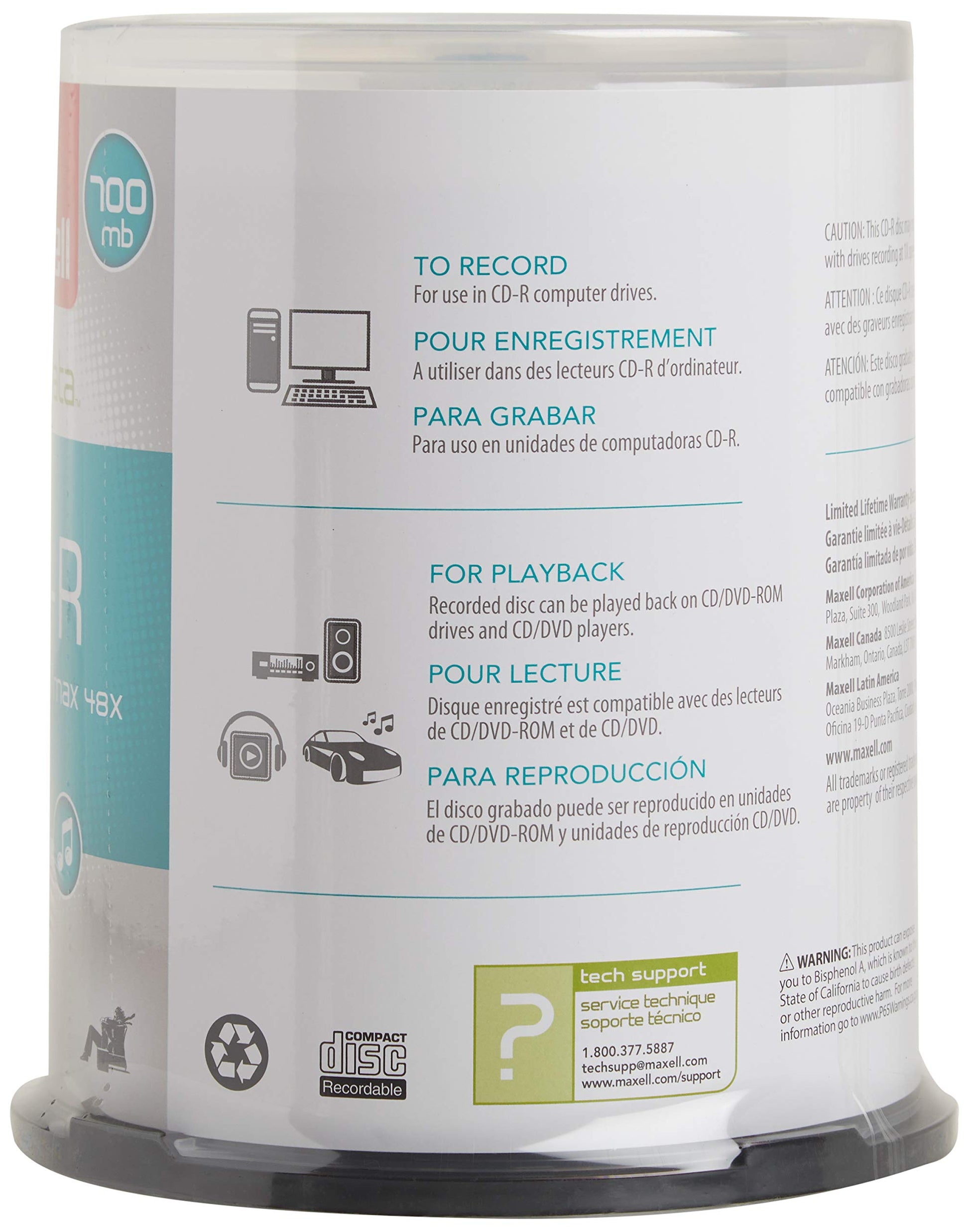 Maxell 648200, Premium Quality Noise free Surface Playback Recordable CDs 700Mb Storage – 2x to 48x, Write Speed 80 minutes - Blank CDs, CD Storage & Reusable Spindle Case Holder – 100 Pack
