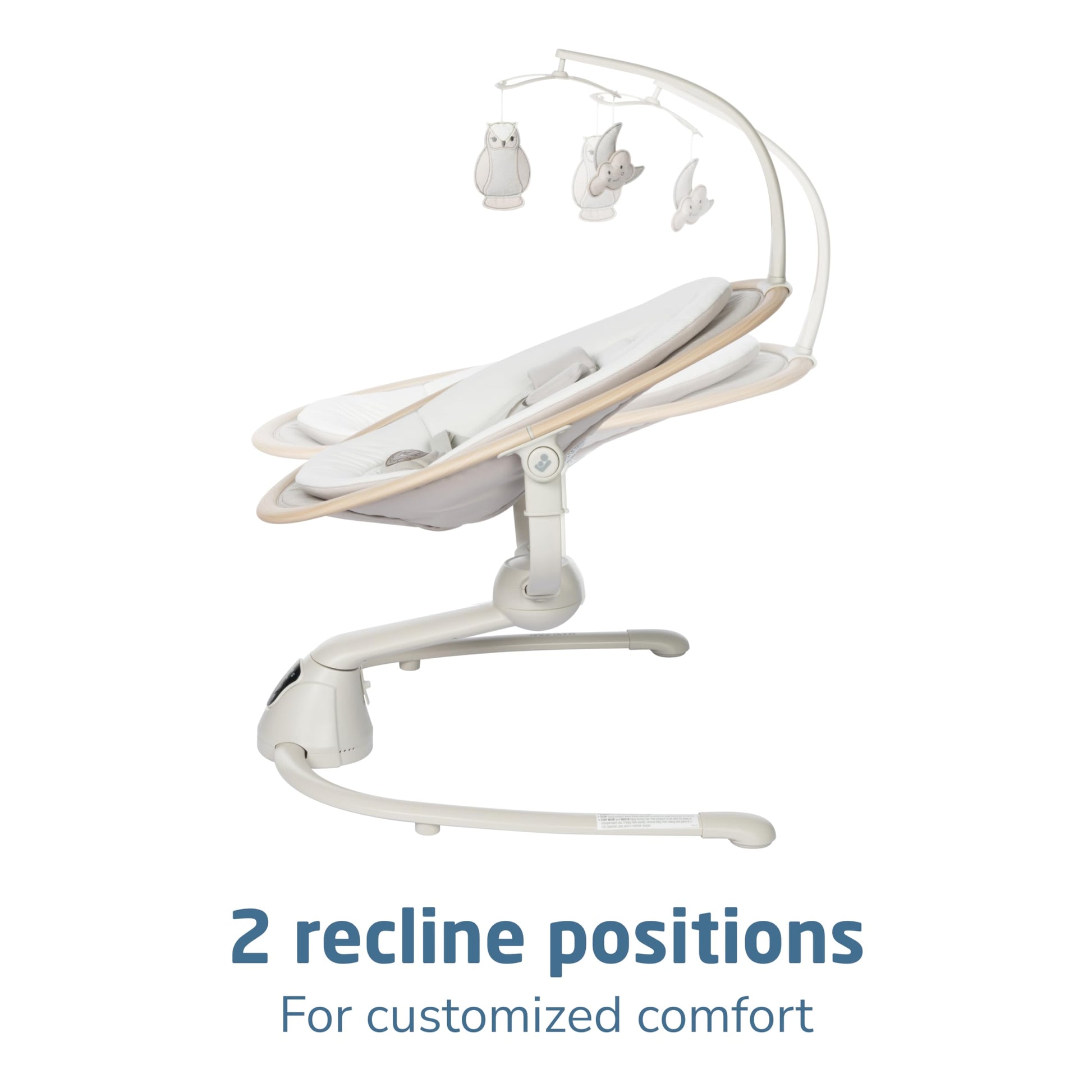 Details: The Cassia Swing is designed to give you freedom and flexibility while comforting your little one. This smart, portable baby swing offers a stationary baby swing option and features an automatic motion detector that activates the baby swing chair when your infant needs extra soothing. The baby swing seat rotates a full 360°, giving your curious cutie more sights to take in, ensuring everyone stays connected. The built-in touch screen panel allows you to select from 5 swing speeds, plus 12 melodies and nature sounds. The Cassia Swing makes a great baby swing indoor option. Crafted with EcoCare, our future-friendly, 100% recycled fabric made from plastic bottles, the yarn produced is soft, comfortable, and breathable–ideal for your little one. The baby swing’s 2 recline positions offer ultimate relaxation, while the soft newborn inlay keeps baby comfy. The removable fabrics, including the newborn inlay and cover, are machine washable for quick and easy cleaning. This newborn swing is also lightweight and foldable, weighing only about 10 lbs, making it easy to transport and store. Additionally, this swing includes 2 felt mobile toys to keep your baby entertained, and its sophisticated, modern color palette blends beautifully with any décor. Ideal for babies up to 20 lbs., the Cassia Swing adds tranquility to a busy day by providing soothing comfort for your baby and convenience for you, enhancing your quality time at home. Remember, never let babies sleep in rockers, bouncers, or swings. The Cassia Swing is a great choice when looking for baby swings for infants with baby toys attached.