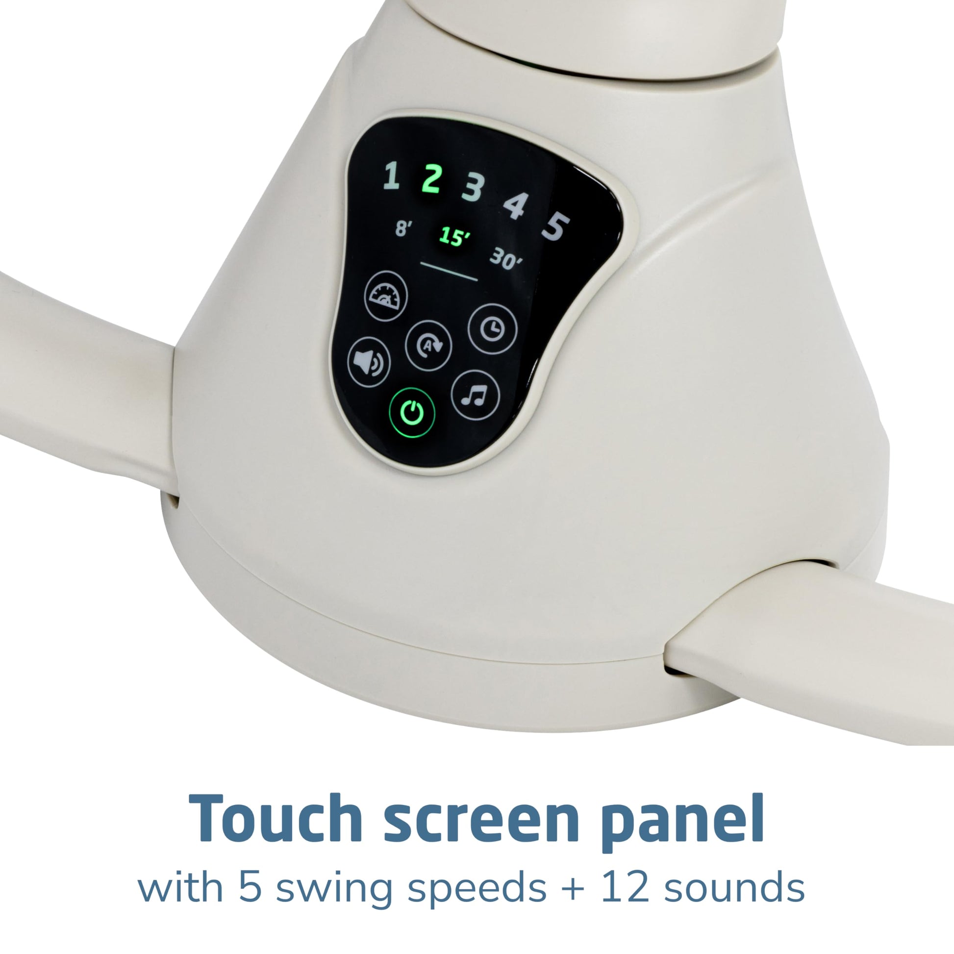 SET THE MOOD WITH THE TIP OF YOUR FINGER: Easily customize the compact baby swing's settings with the smart built-in touch screen panel, selecting from 5 swing speeds and 12 melodies and nature sounds.