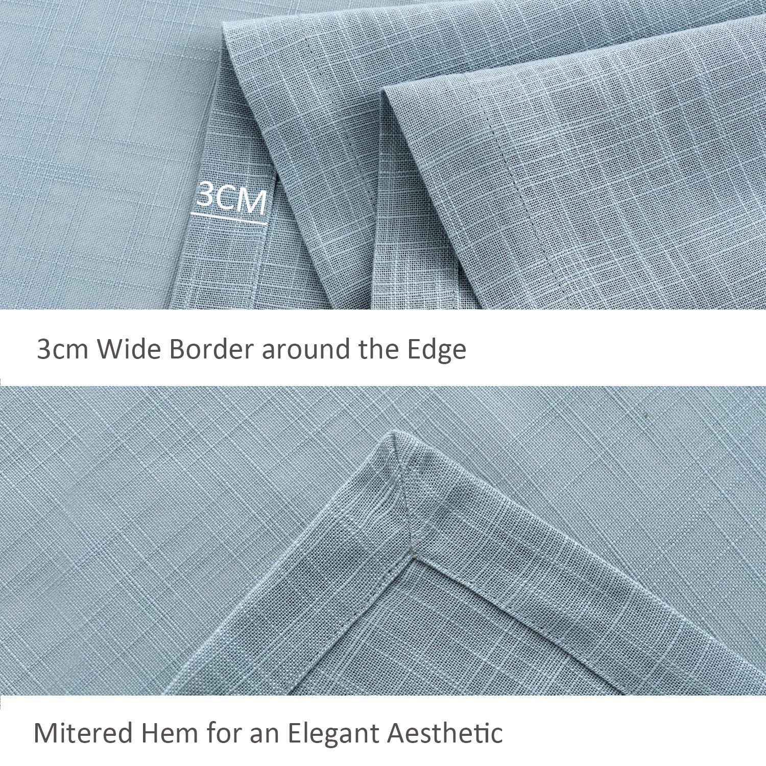 • Our table cloths are made of high-quality polyester faux linen yarn, with slubby texture. It is more durable than real linen yet soft and supple; while protecting table surface, our tablecloth also adds a sense of understated luxury to your dining scene.