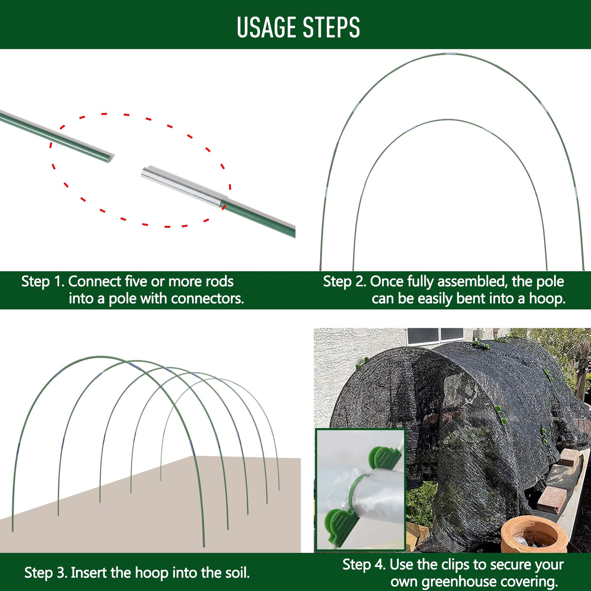 • 【JUST BEND IT】Use the connectors to join the required number of rods. As you bend the hoops, they connect securely. Insert them into the soil, and you'll find these hoops can be reused season after season.