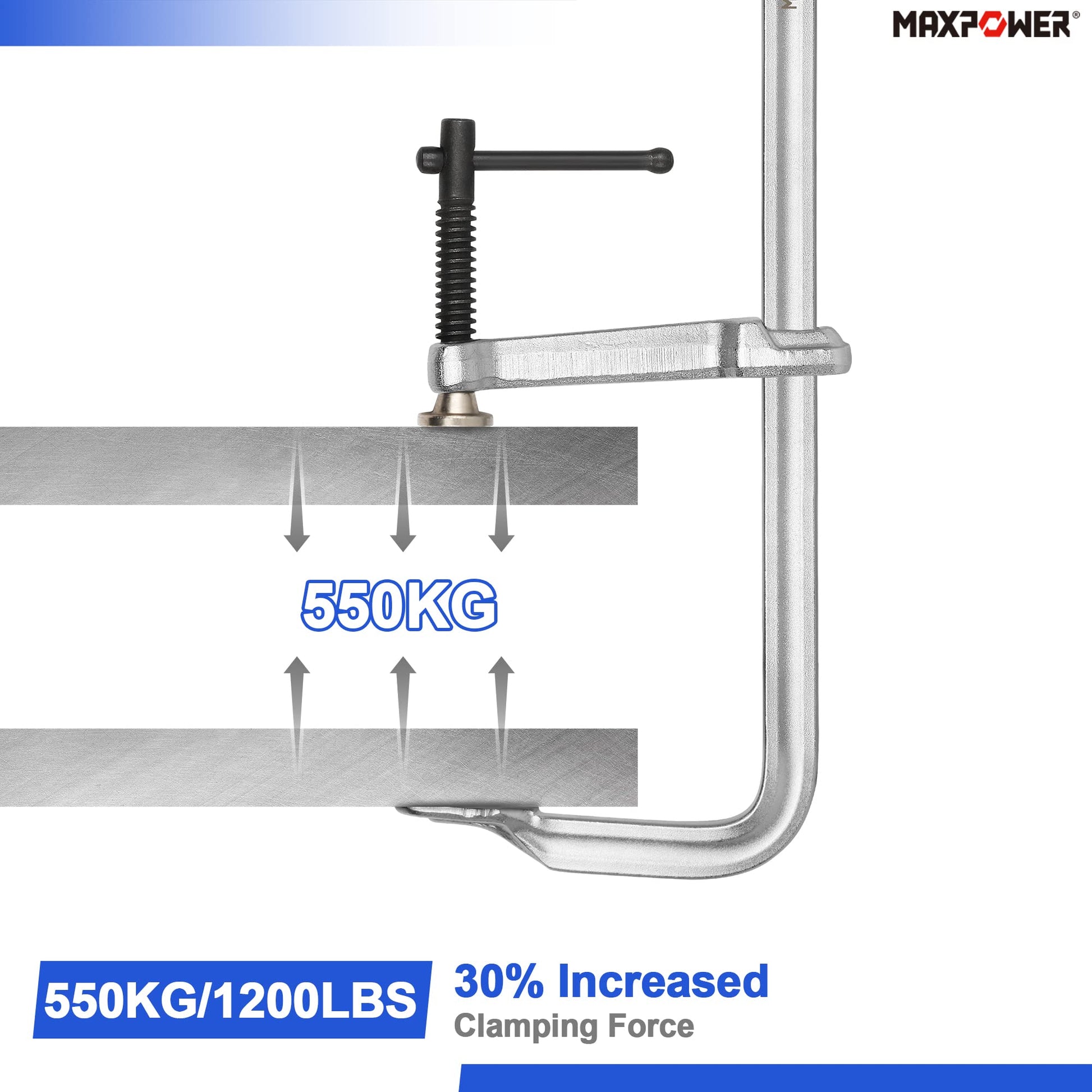 • 30% Increased clamping pressure 550KG / 1200lbs, Construction of full body forged steel bar for maximum stength, recommend for welder clamp