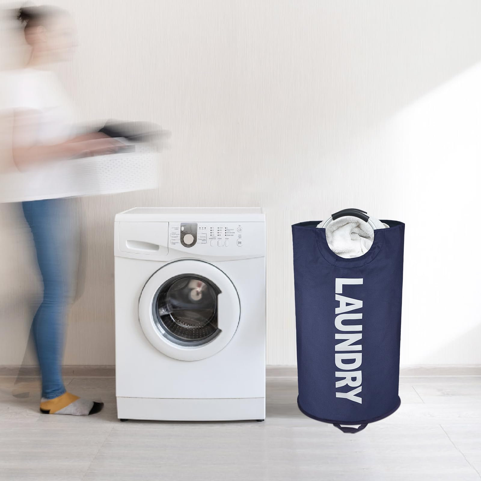 Maxsilan 90L Large Laundry Basket, Freestanding Tall Clothes Hamper, Collapsible Laundry Bag, Dark Blue