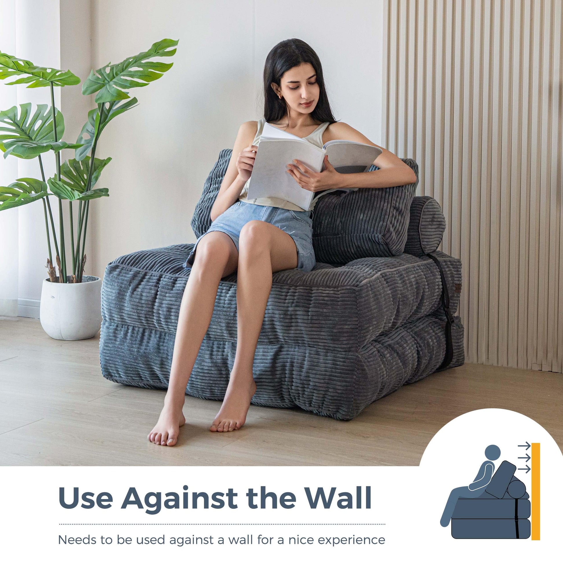 MAXYOYO Folding Sofa Bed, Convertible Sleeper Chair with Pillow Foldable Mattress with Back Support, Portable Fold Out Chair Bed Comfy Floor Sofa Lounge for Living Room Bedroom, Dark Grey, Single