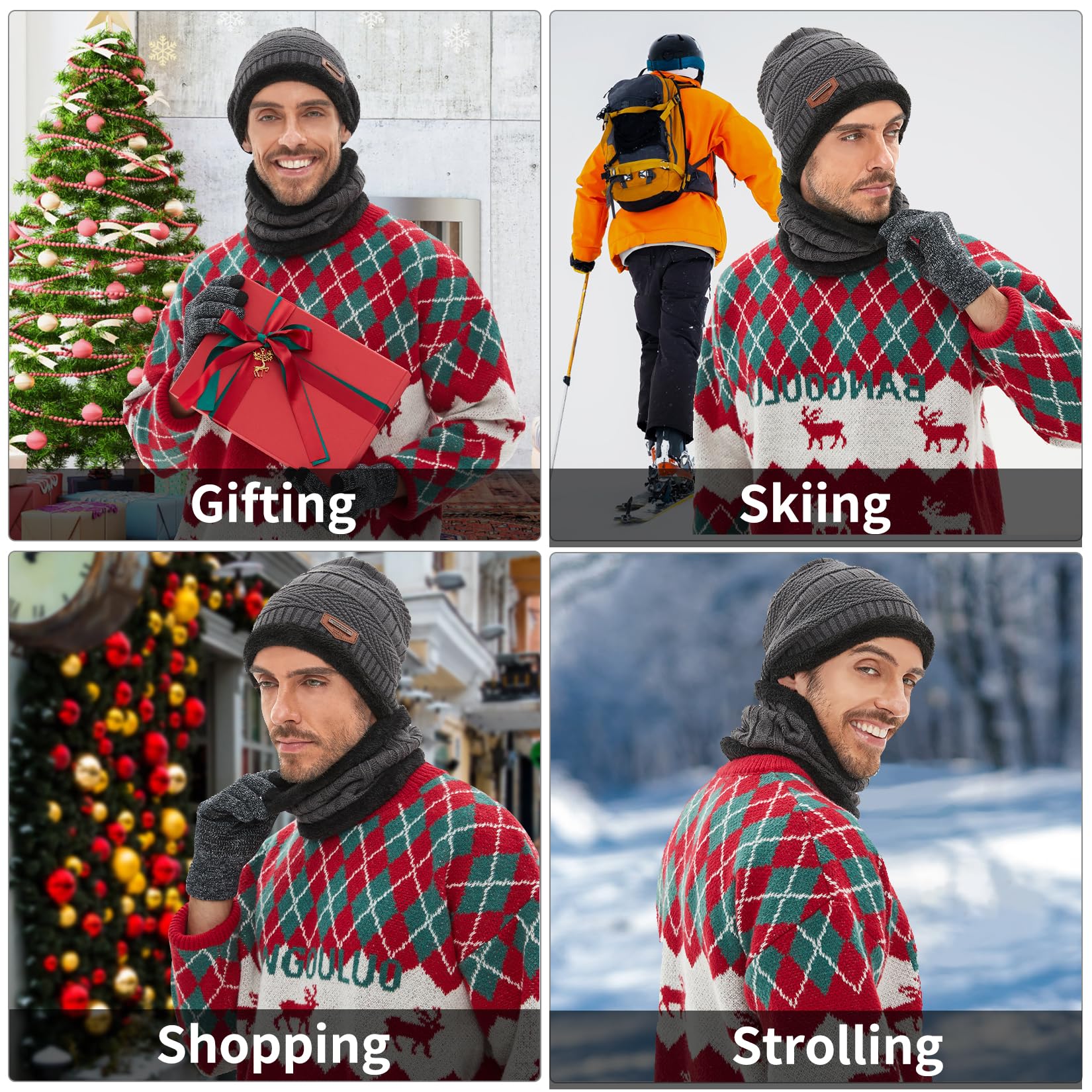 • 「3 in 1 Hat Scarf and Glove Set」: You will get 1 * Knit Beanie Hat + 1 * Neck Warmer + 1 Pair * Anti-slip Touchscreen Gloves to help you get through the cold winter.