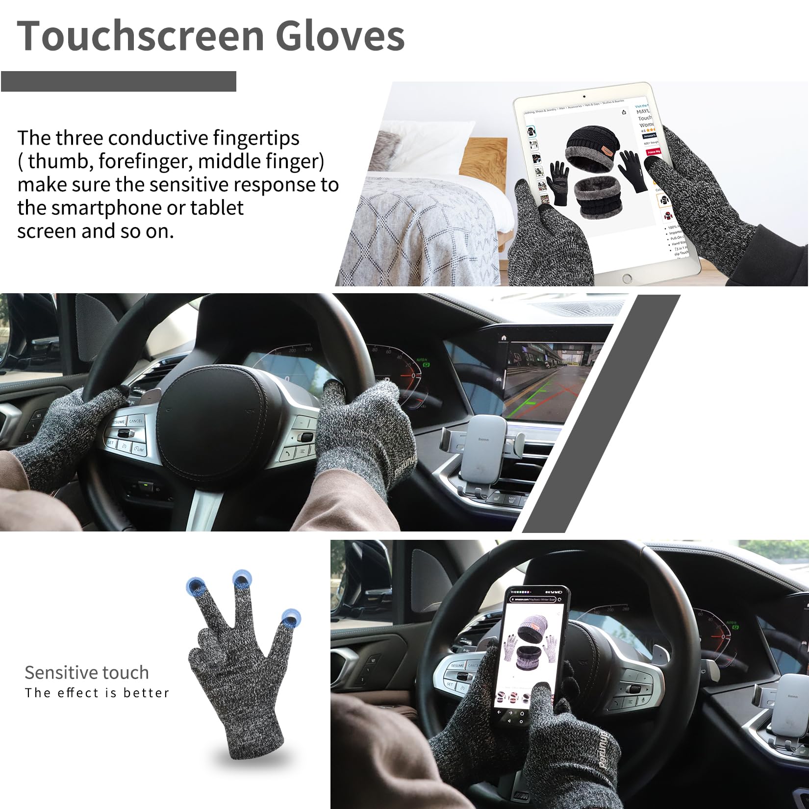 MAYLISACC 3 Pcs Mens Womens Winter Warm Fleece Beanie Hat with Touch Screen Gloves and Neck Warmer Gaiter Set Grey
