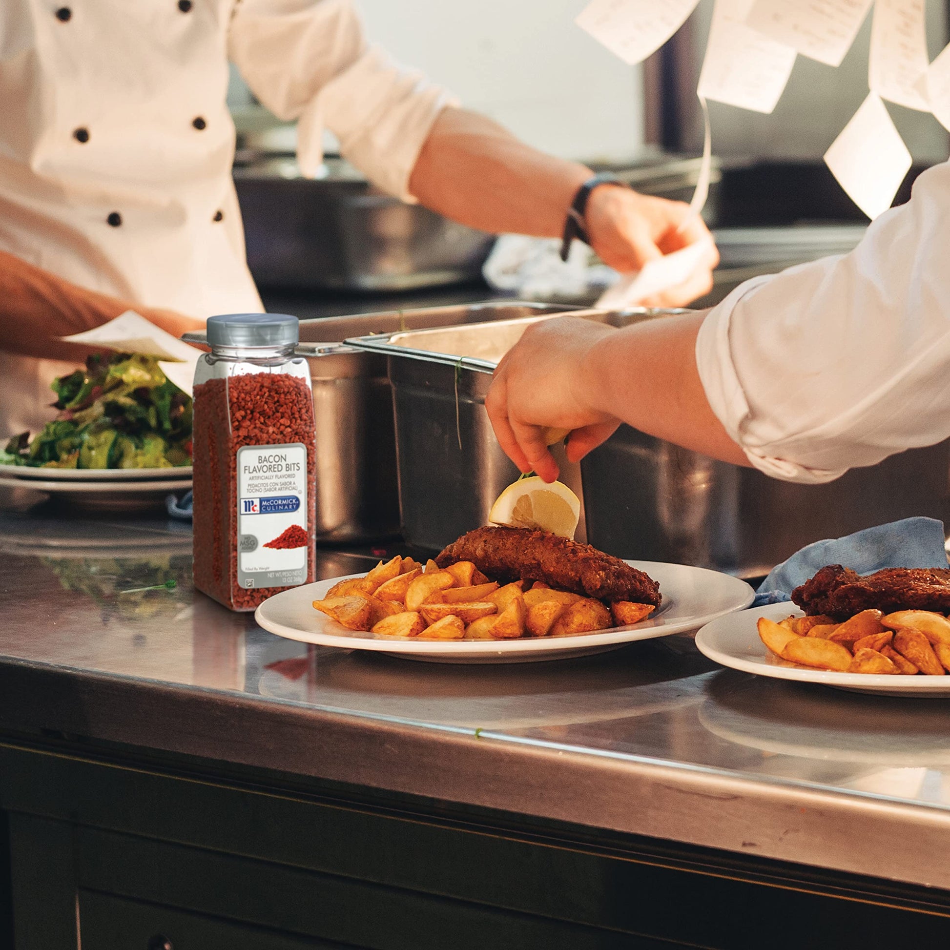 PERFECT FOR CHEFS: McCormick Culinary Bacon Flavored Bits come in 13-ounce containers; great for placing on tables or including in soup and salad bars
