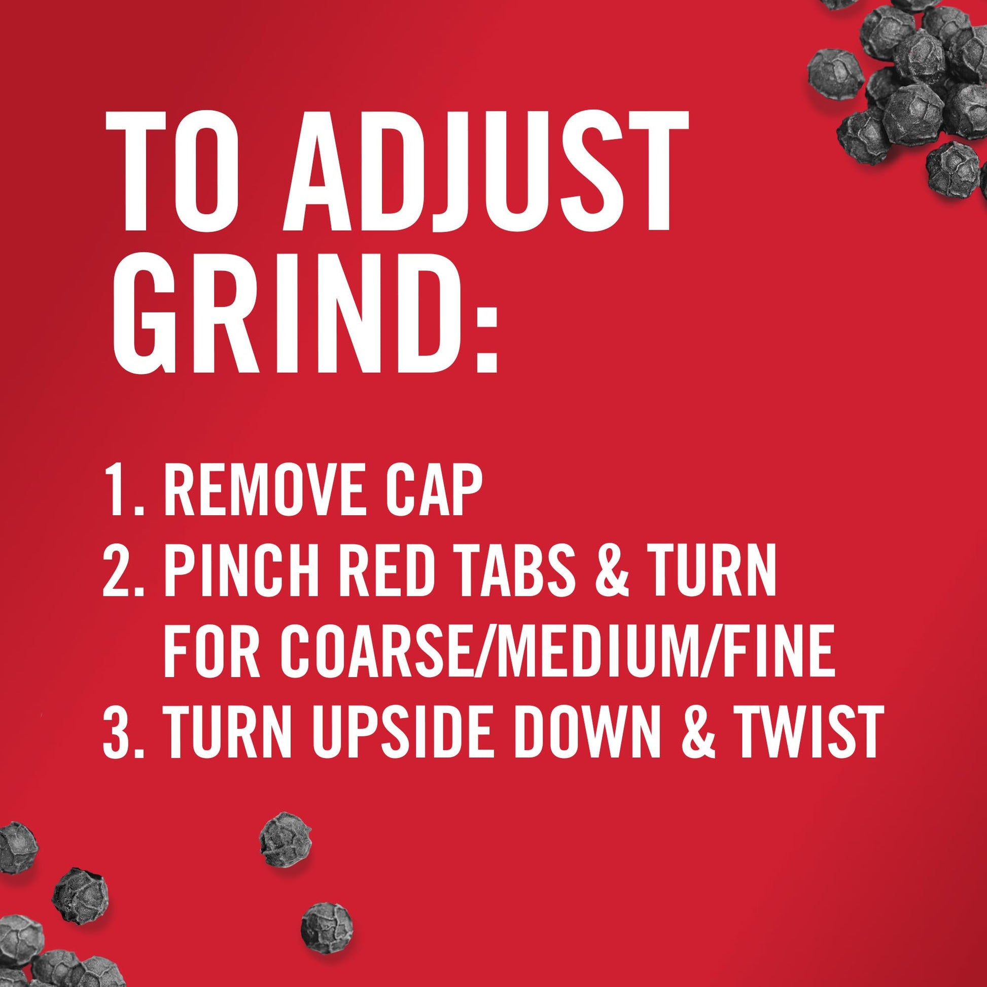 • To use: remove cap, adjust grinder to desired grind, turn upside down and twist