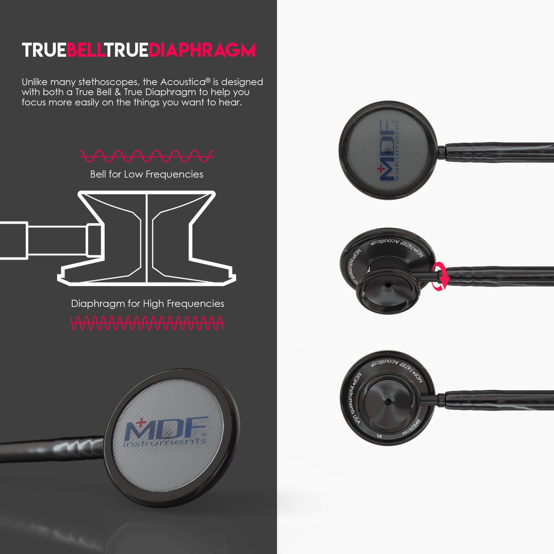 MDF Instruments, Acoustica Lightweight Stethoscope for Doctors, Nurses, Students, Home Health Use, Adult, Dual Head, Black Tube, Black Chestpiece-Headset, MDF747XPBO