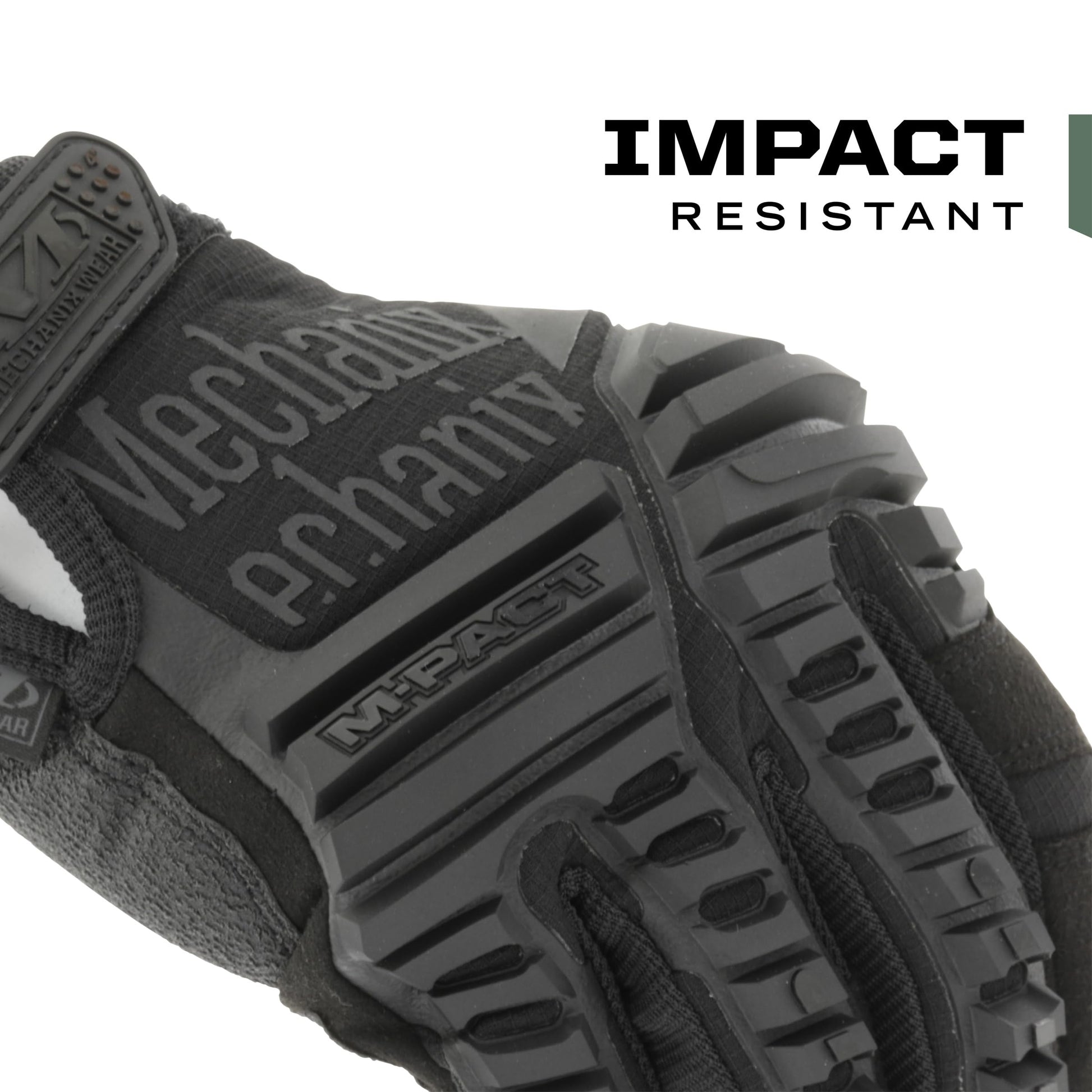 Details: Make an M-Pact in the field. The heavy-duty Thermoplastic Rubber (TPR) knuckle guard and dedicated finger guards to reduce impact and abrasion injuries in the field. The dual-layer internal fingertip construction reinforces the thumb and index finger for improved abrasion resistance, while the embossed fingertip pattern improves feel, grip, and overall dexterity. Protected by D3O palm padding, these protective gloves absorb and dissipate high-impact energy through the palm when you’re fully engaged so you can maintain your focus. EN 13594 professional rated impact protection in the knuckles, these utility gloves are the tactical gear you can trust for range sports, airsoft, paintball, combat, construction, riding, patrol, field use, and a long list of tasks. The Mechanix Wear M-Pact gloves maximize protection so you can focus on the task at hand.