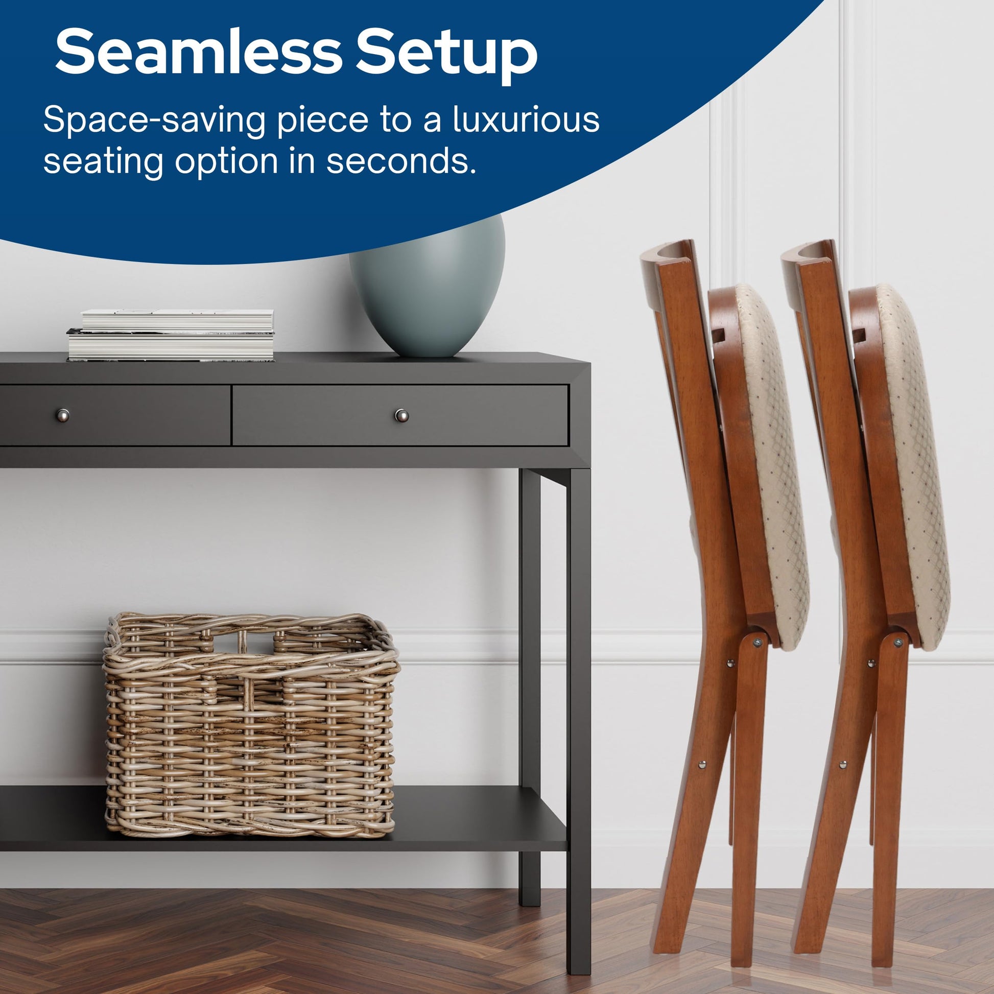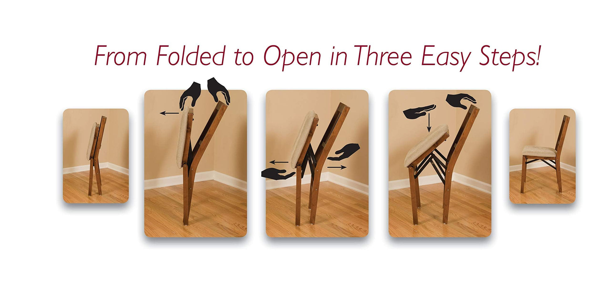 • STURDY STEEL FOLDING MECHANISM: Equipped with a strong, reliable steel folding mechanism, these upholstered folding wood chairs allow for smooth, easy setup and effortless folding. The high-quality steel ensures these wood folding chairs with cushions can withstand frequent use without compromising stability.
